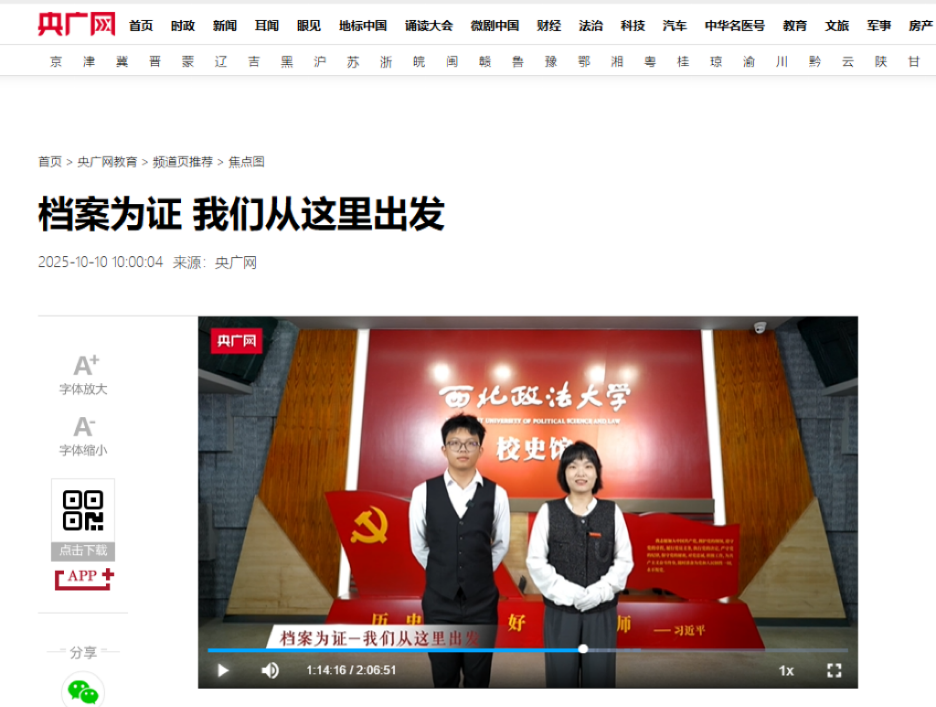 【央广网】档案为证 我们从这里出发——永不褪色的合影:西法大与法治中国的同频之路 1:14:02——1:24:35 https://edu.cnr.cn/pdtj/jd/20251010/t20251010_527390754.shtml
