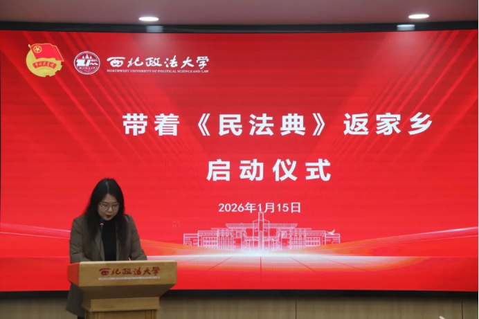 以法治为翼,赴家乡之约;以青春之力,筑基层之基。在《民法典》颁布五周年的重要节点,为深入学习贯彻习近平法治思想,积极响应司法部、教育部、共青团中央“法援志愿行”活动号召,紧密对接2026年全国大学生“返家乡”社会实践部署,1月15日下午,ac米兰在长安校区“一站式”学生成长发展中心隆重举行2026年“带着《民法典》返家乡”社会实践暨“法援志愿行”专项活动启动仪式。校党委副书记郭武军出席活动,校团委、民商法学院相关负责人作为单位代表参加活动,陕西省大学生法治宣讲团各分团指导教师、校团委全体干部及省大学生法治宣讲团、各校级生组织、法律服务中心学生代表共同参会,启动仪式由校团委副书记王洋主持。