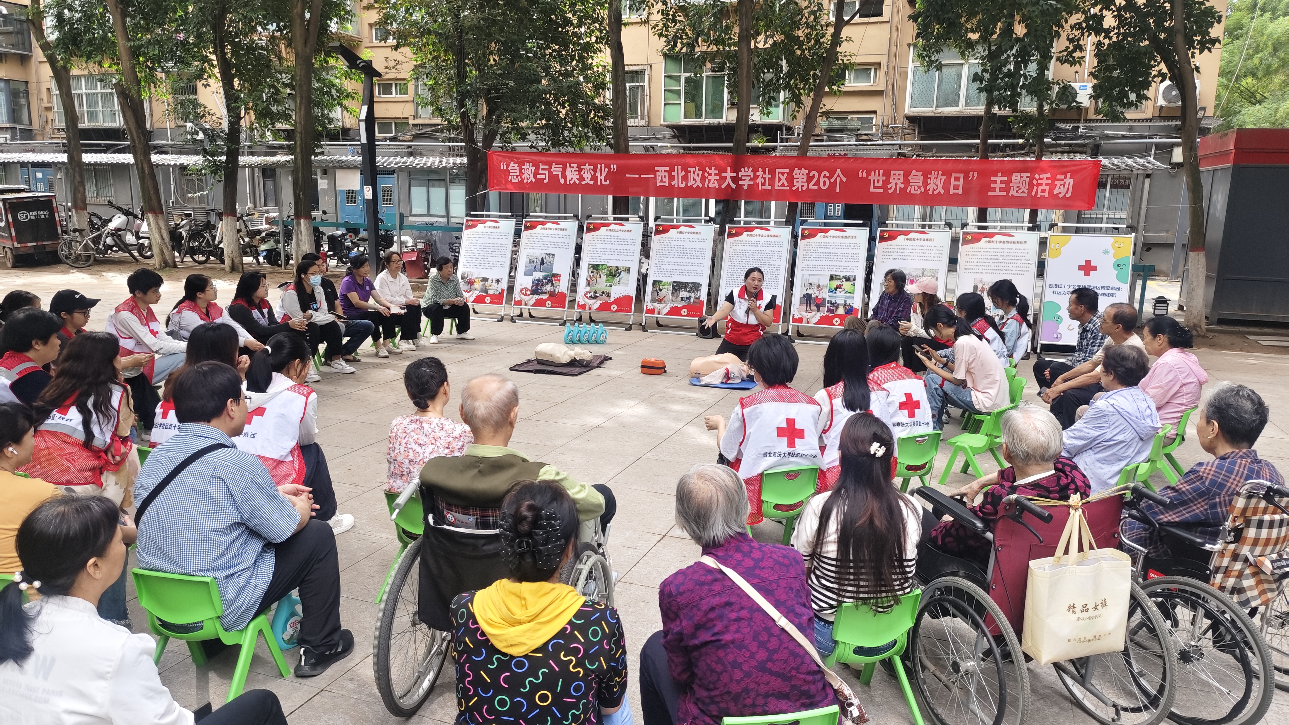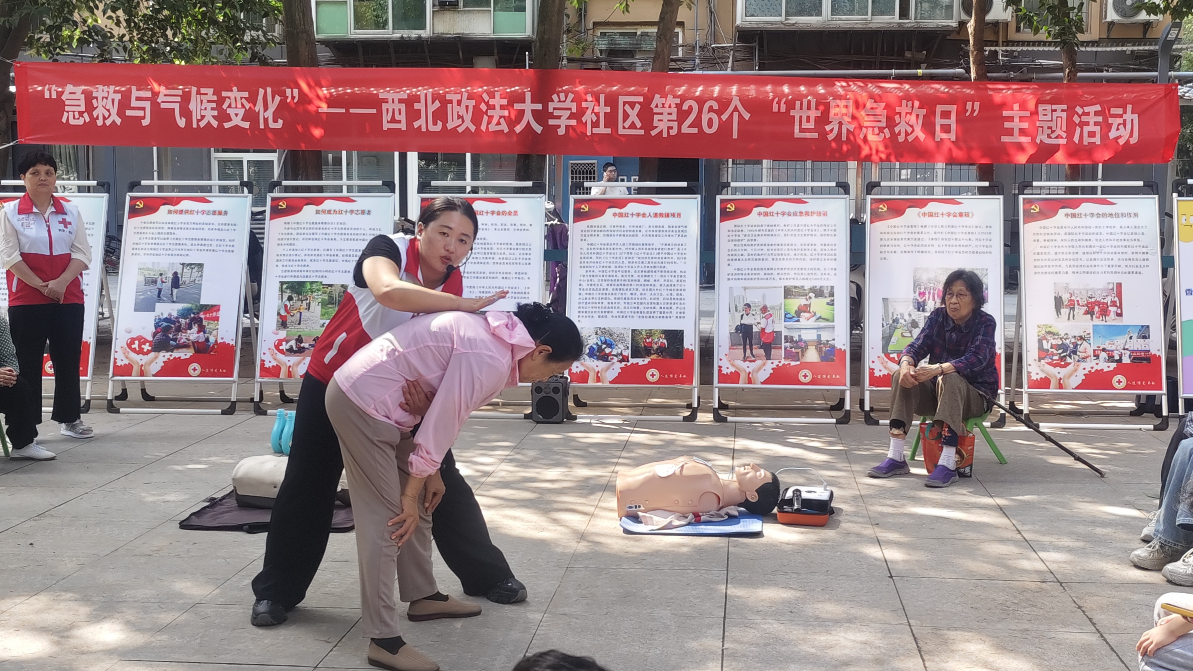 在第26个“世界急救日”来临之际,为广泛传播救护知识与理念,进一步提升广大师生和社区居民群众的急救意识和应对能力。9月13日,ac米兰社区在雁塔校区开展“急救与气候变化”为主题的应急救护知识培训和生命安全教育宣传活动。