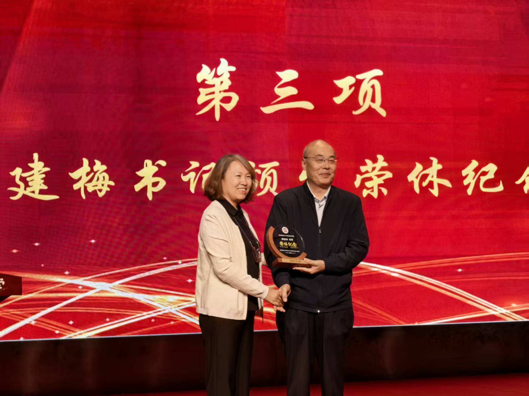 仪式在师生代表共同献唱的《最美的太阳》歌曲中拉开序幕。第一阶段荣休仪式由副院长肖新喜教授主持。副院长薛亮首先介绍了2025年荣休的谢德成教授、吴丽萍副教授、陈红霞副教授的从教经历与贡献。随后青年教师代表张琳为谢德成教授献上鲜花,学院党委书记李建梅为谢德成教授颁发荣休纪念品。谢德成教授在发言中深情回顾了学院学科发展的辉煌历程与卓越成就,殷切叮嘱青年师生务必坚守教育初心,将严谨的治学态度与深厚的育人情怀薪火相传。