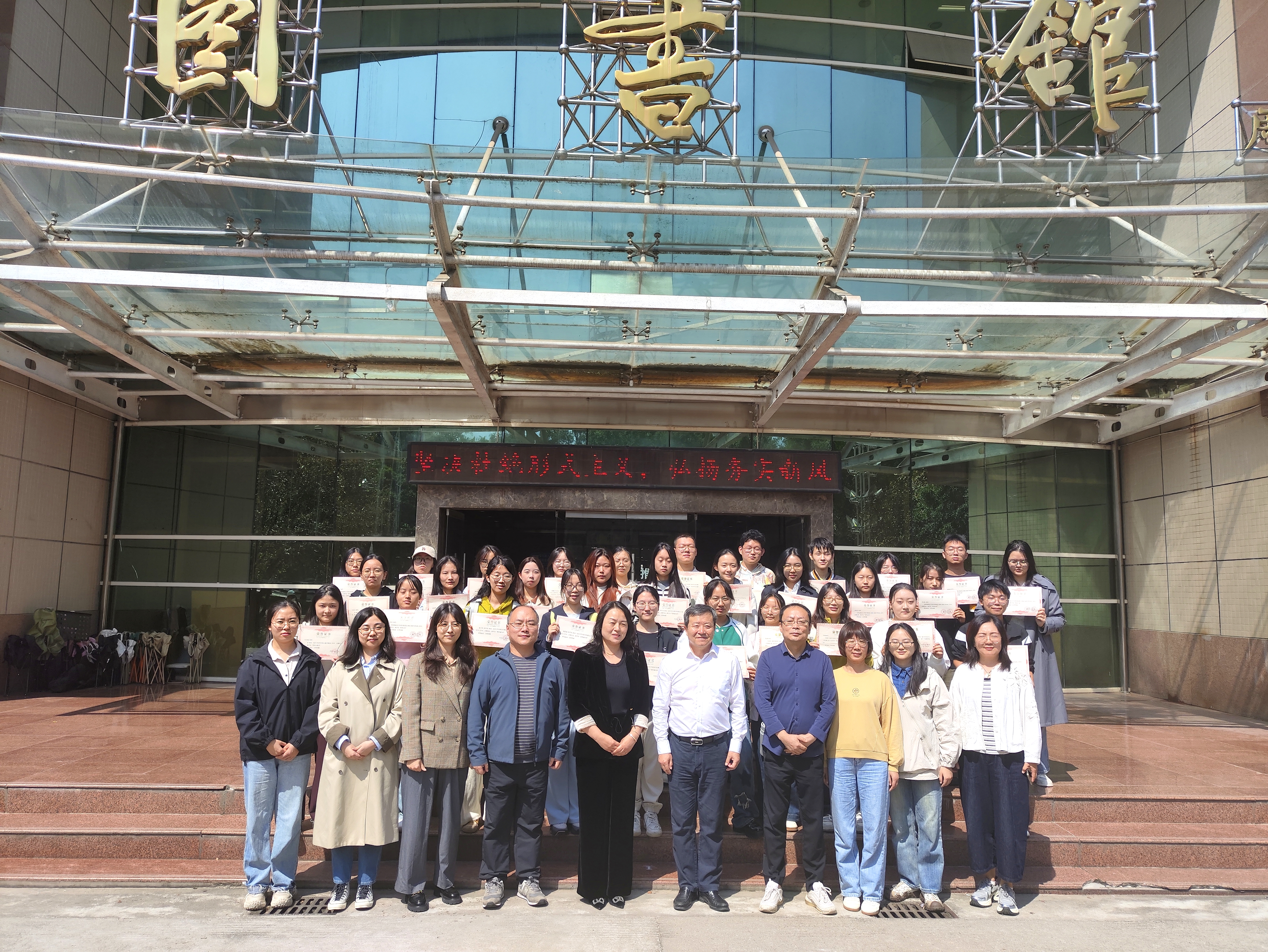 本次会议表彰了在图书馆学生管理委员会、志愿服务者、读书促进会、馆刊编辑部、官微编辑部工作中表现优异的270名学生,他们积极奉献,用行动诠释了志愿服务精神。张宏斌,党总支书记翁晓磊及指导老师们为获奖同学代表颁发了证书。