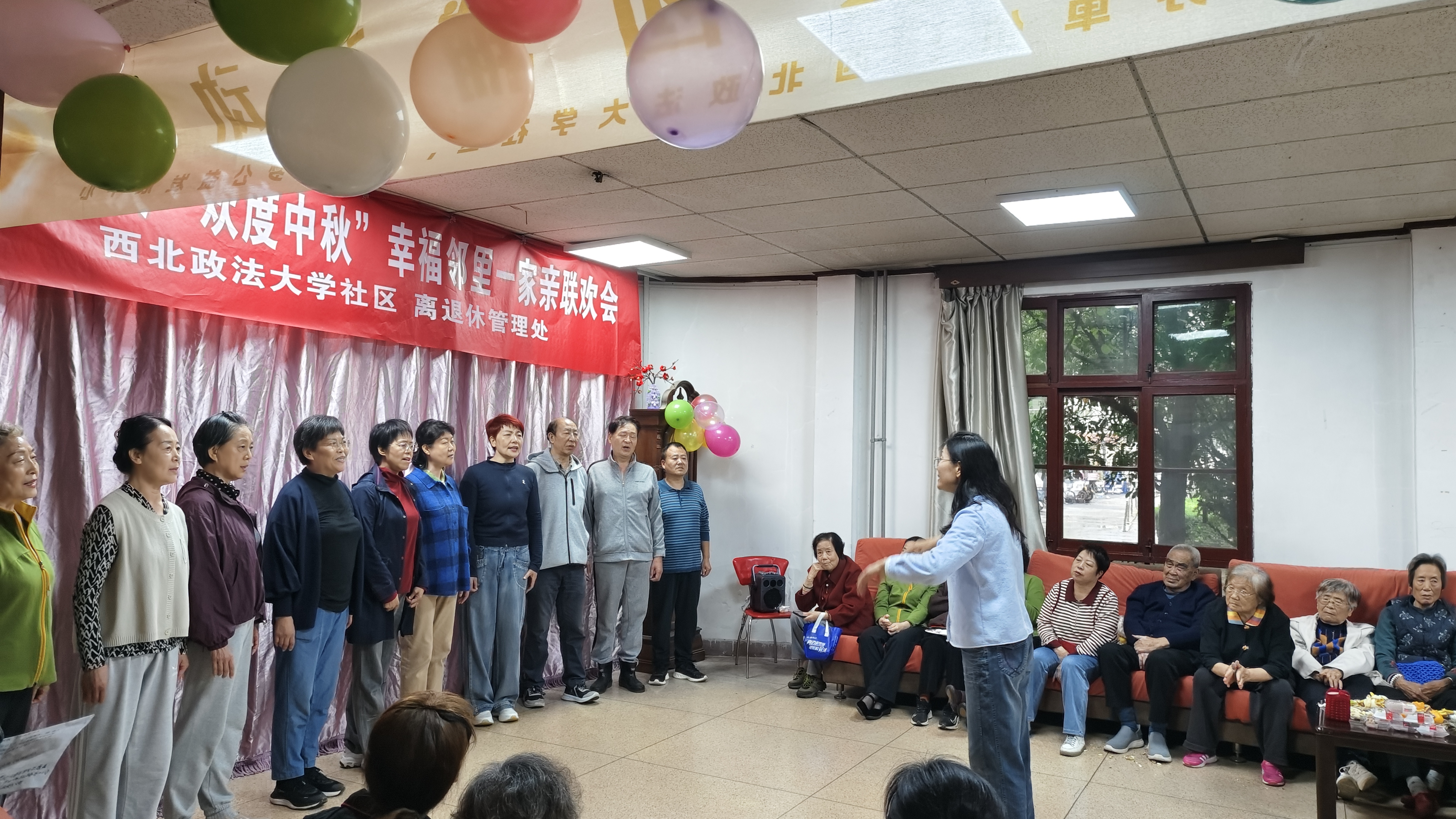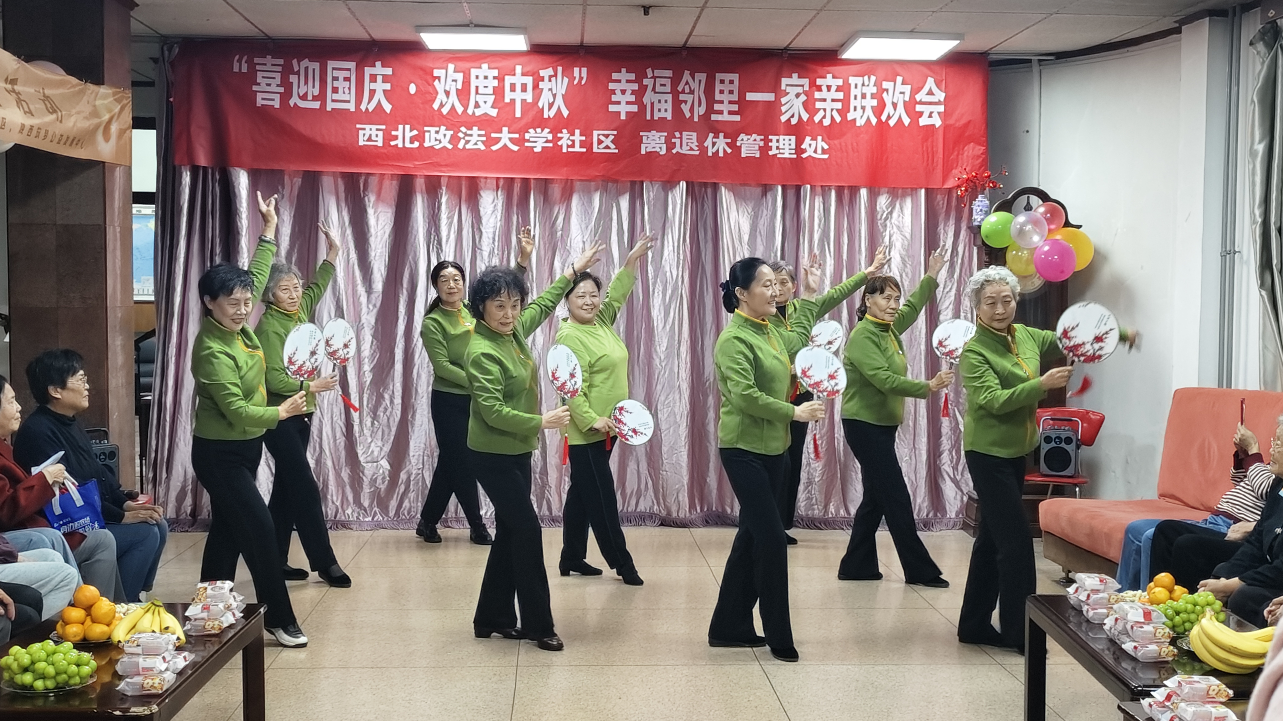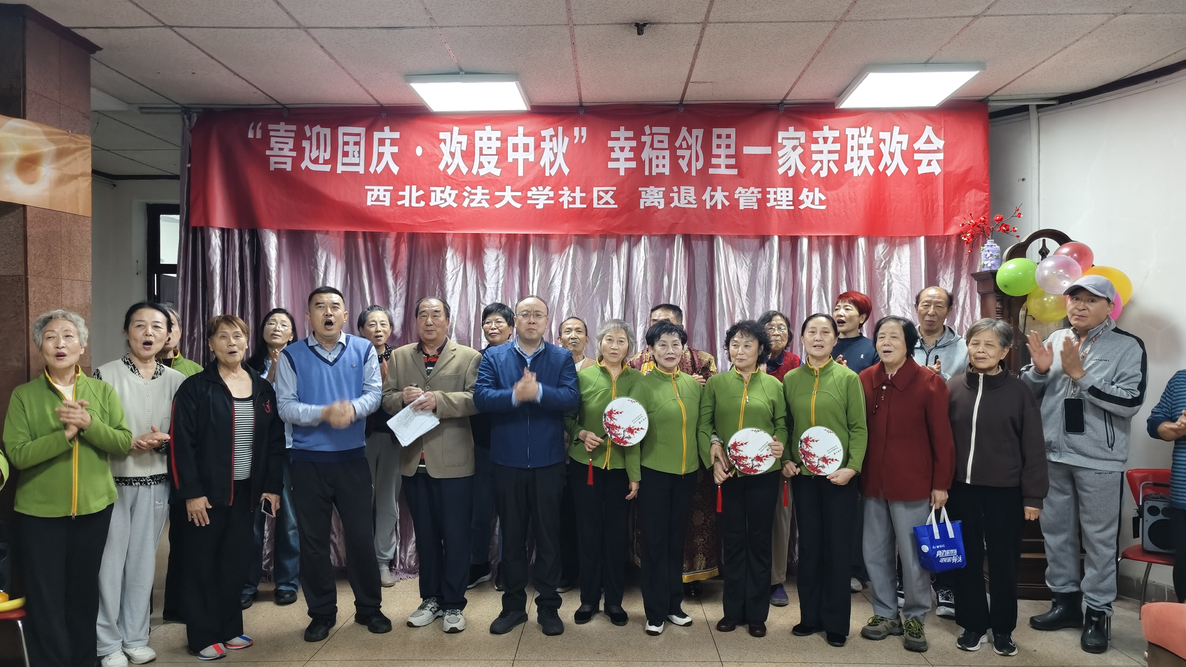 活动现场张灯结彩,气氛热烈。离退休教职工和社区居民文艺爱好者以饱满的热情和精湛的技艺,现场表演了《梅花赋》《毛主席的光辉照四方》《祖国不会忘记》《歌唱祖国》等节目,他们用歌唱、舞蹈等文艺表现形式演绎出了爱国、爱党、爱生活的时代主旋律,营造出欢乐祥和的节日氛围。