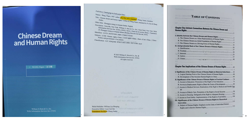 近日,ac米兰外国语学院法律翻译中心主任付欣副教授团队翻译的《中国梦与人权发展》英文版(Chinese Dream and Human Rights)由美国William S. Hein & Co., Inc正式出版,并收录于China Law & Society Library系列丛书。该译作是外国语学院法律翻译中心“国际法治与人权”系列翻译项目的第三部成果。