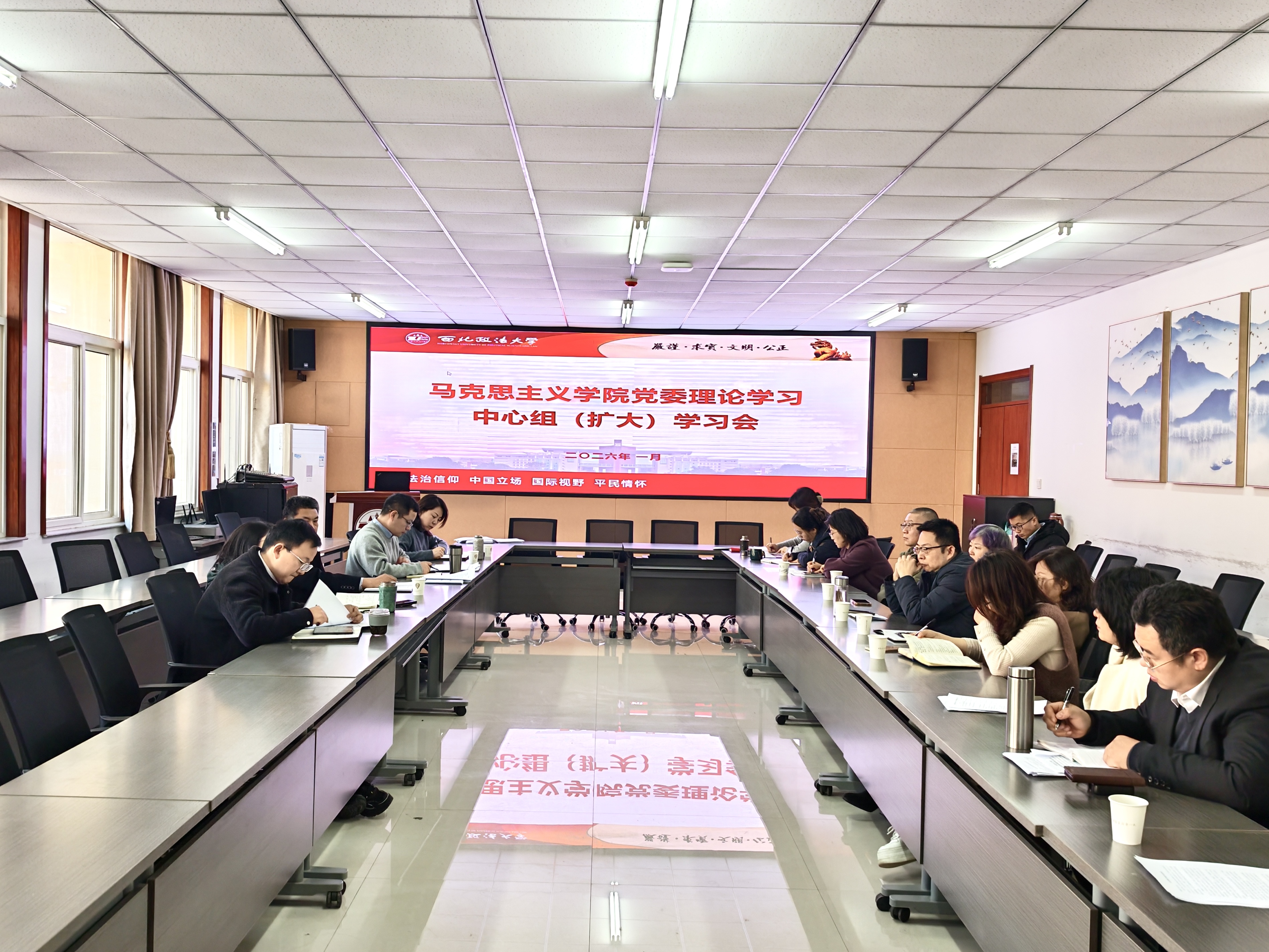 1月12日,马克思主义学院党委召开理论学习中心组(扩大)学习会。学院领导班子成员、党委委员、各党支部书记及科级干部参加会议,会议由学院党委书记李政敏主持。