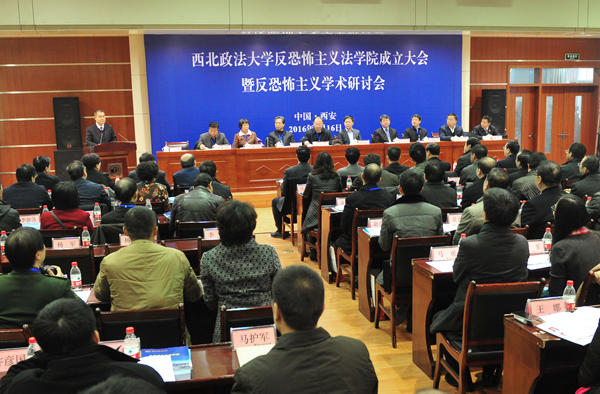 1月16日上午,ac米兰官网中文网站反恐怖主义法学院成立大会暨反恐怖主义学术研讨会在长安校区图书馆一楼报告厅举行。来自中央政法委、最高人民法院、最高人民检察院、教育部、中国法学会、新疆维吾尔自治区党委政法委、陕西省委高教工委、陕西省教育厅等领导机关、实务部门及中国政法大学、西南政法大学、华东政法大学、中南财经政法大学、清华大学等国内高校的200多位专家学者参加了会议,并在随后举行的学术研讨会上围绕反恐怖主义问题展开研讨。