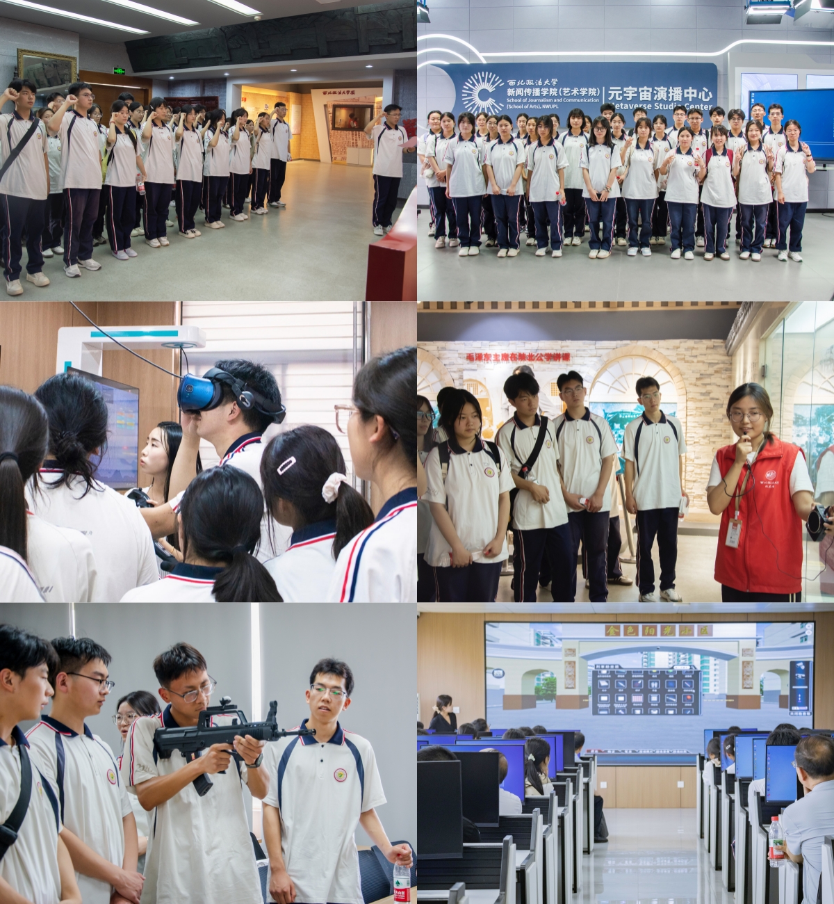“我宣誓:忠于中华人民共和国宪法……为实现中华民族伟大复兴中国梦努力奋斗!”清晨9点,学校校史馆内传来庄严的宣誓声。跟随讲解员的脚步,同学们仿佛穿越回那段烽火岁月,真切感受到这座“红色学府”的深厚底蕴。随后,大家一起参观张汤墓遗址陈列馆,在这个传统法治智慧与现代法治精神的对话场域,感受中华法治文明的悠久脉络,思考法治文明的古今嬗变。图书馆涵盖古今中外的馆藏书籍、新闻传播学院(艺术学院)现代传播实验教学中心的“虚拟演播厅”、公安学院(公共安全法学院)实验室的“痕迹检验设备”、模拟法庭的“现场开庭”、国家级法学实验中心和智慧教室的先进便捷……更是让同学们大开眼界。