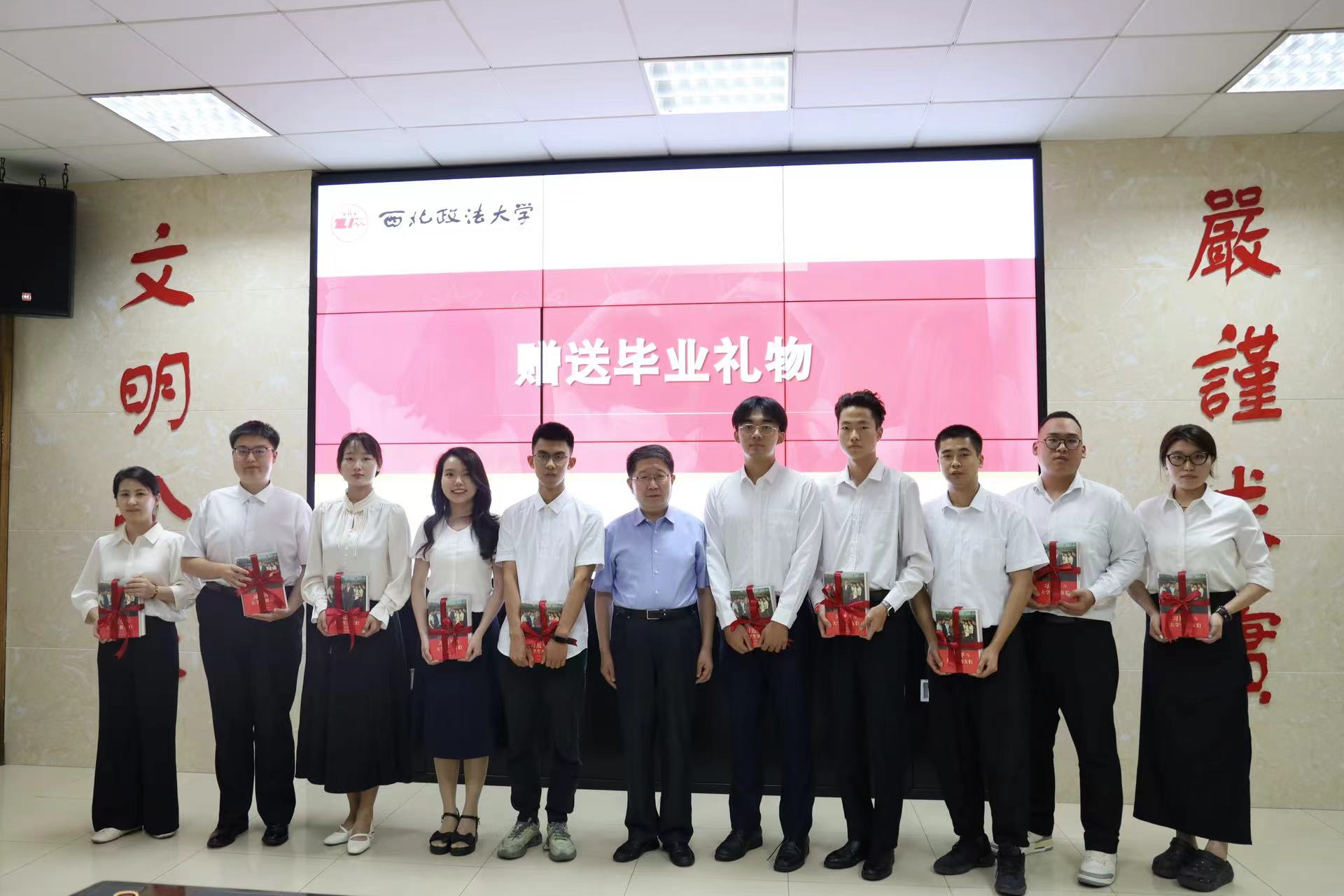 校党委书记孙国华对毕业生代表在校期间取得的优异成绩表示祝贺,对同学们关心学校事业发展、提出宝贵建议表示感谢,并嘱咐大家在新的人生阶段要不断追求卓越、勇攀高峰,他强调,要自觉传承红色基因,始终铭记老延大优良传统和西法大人的身份标识,保持与党和国家同呼吸、共命运的赤诚情怀;要主动融入时代发展,始终牢记党和国家的需要,用扎实的专业知识,为社会发展与进步贡献青春力量;要努力积蓄攻坚精神,勇敢面对挫折和挑战,努力在摸爬滚打中壮实筋骨、在攻坚克难中拔节成长。
