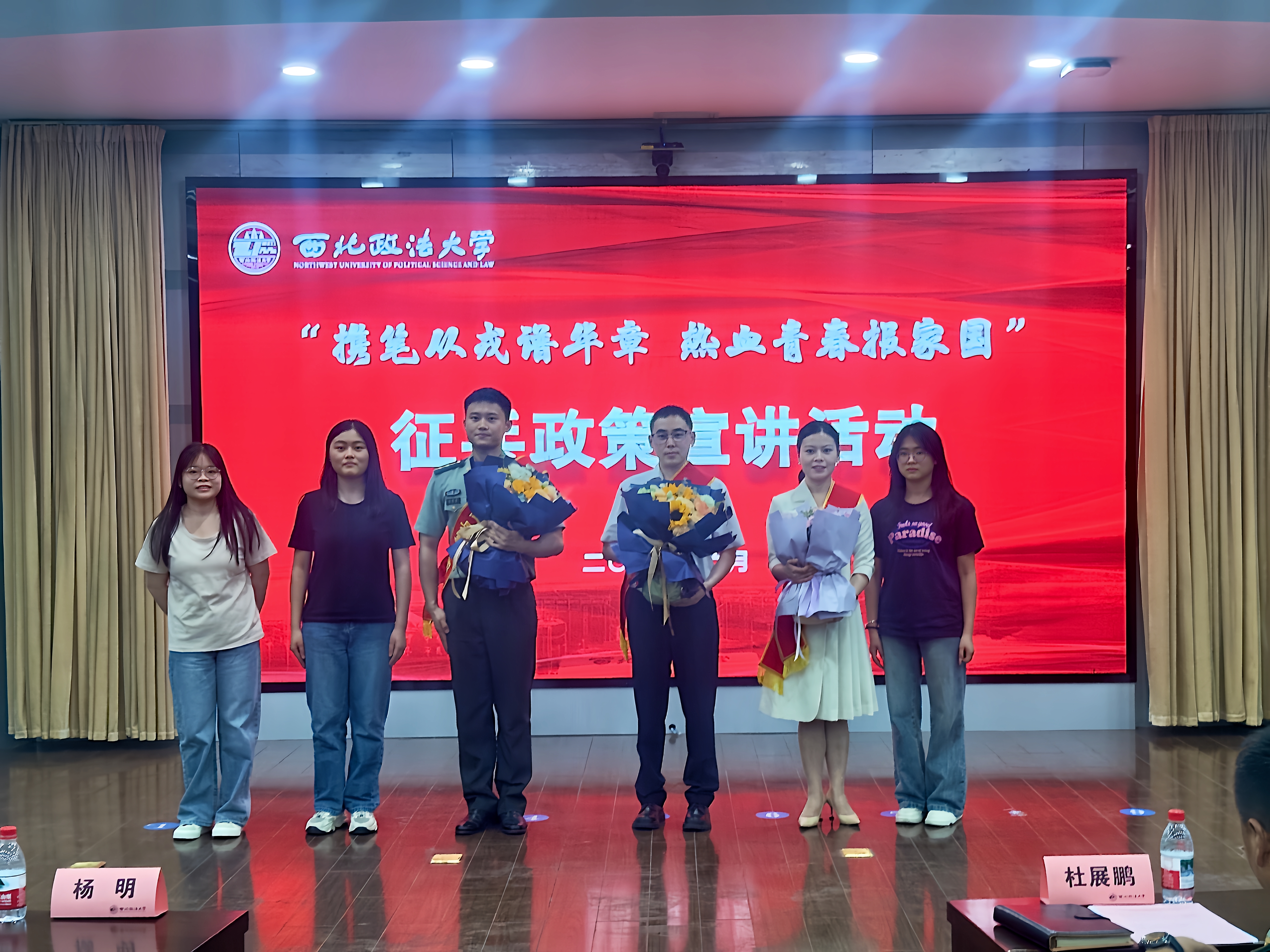 ac米兰学生代表向三位宣讲人员献花,杜展鹏为同学们提供了现场咨询服务,解答了大家关于征兵的疑问,详细介绍了征兵入伍的各项流程和注意事项。