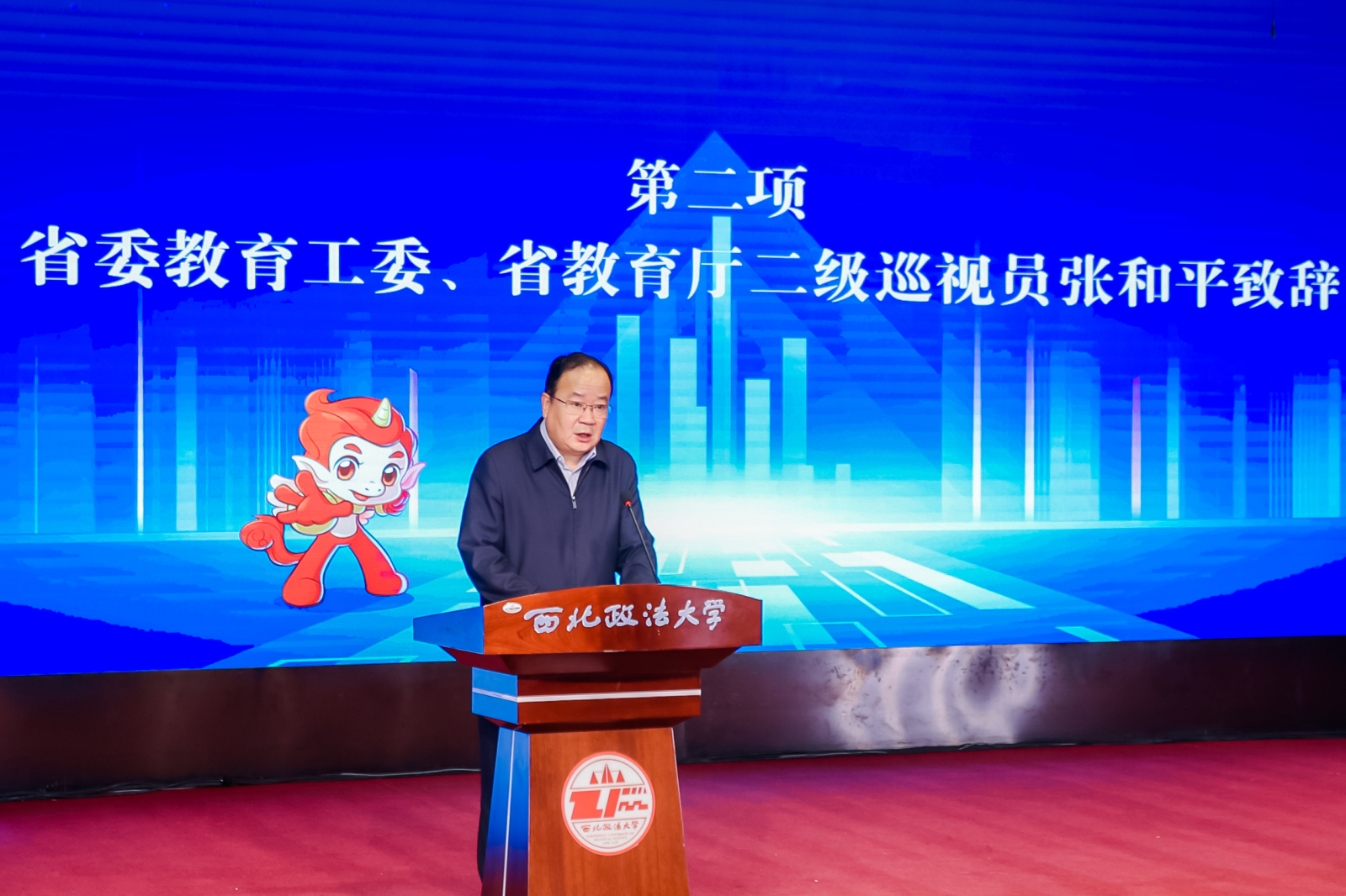 9月27日上午,2025年陕西省学生“学宪法 讲宪法”大赛暨国赛选拔赛在ac米兰开幕。陕西省委教育工委、省教育厅二级巡视员张和平,省教育厅政策法规与教育执法处处长付仲锋、ac米兰党委副书记张军政出席开幕式。