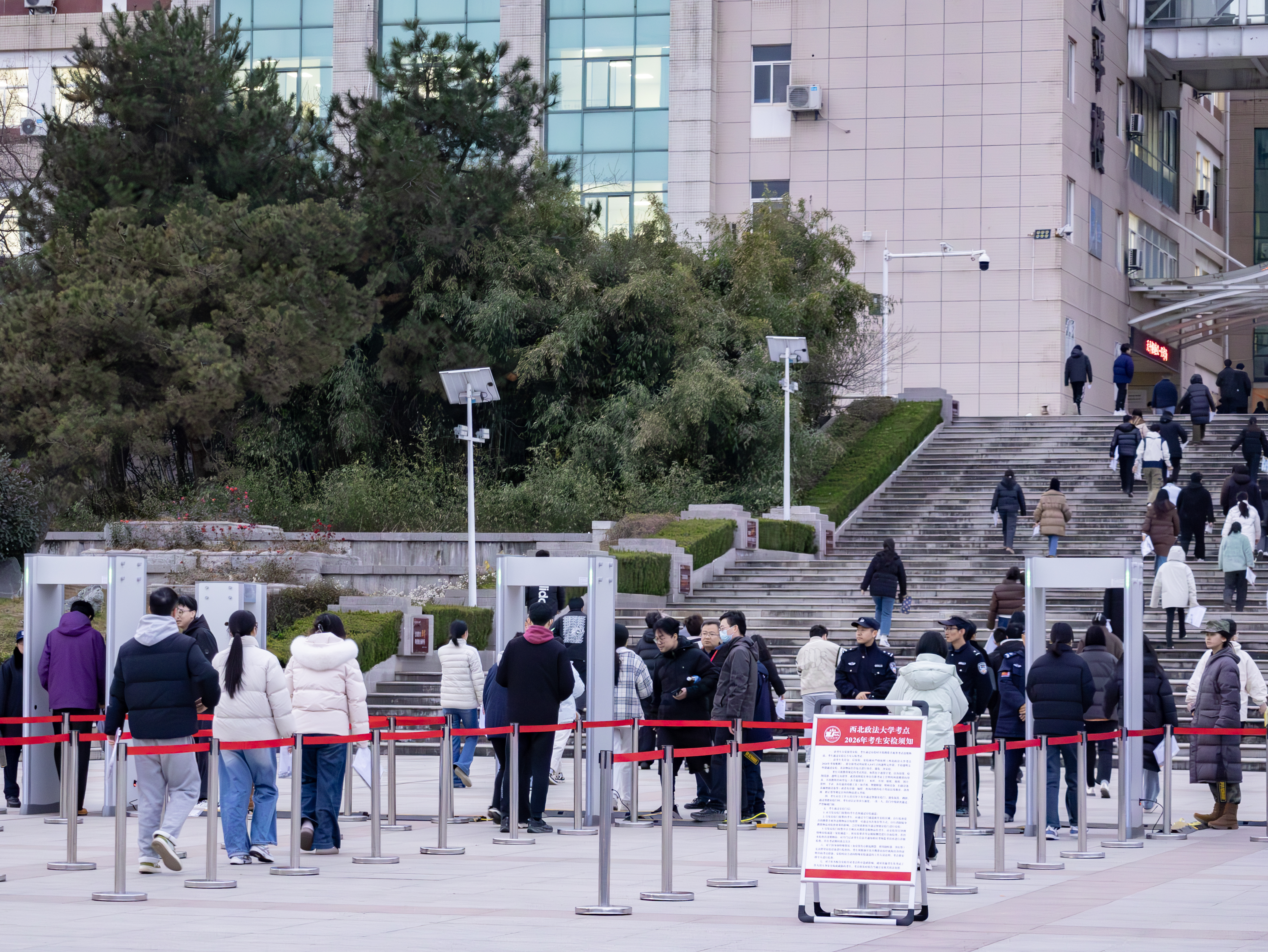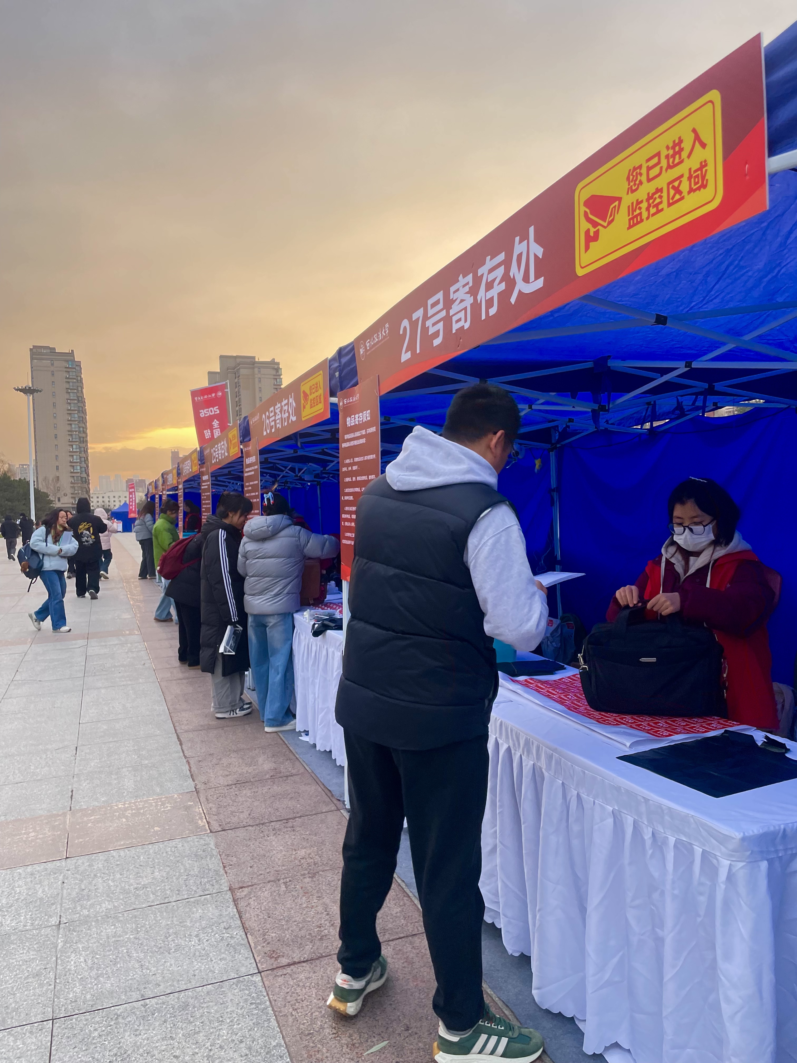 考试期间,学校全力保障智能安检与高效巡检,并在考点周边设置4处“考务应急处置点”,提供应急文具、医疗物资、充电设备等便民服务,切实满足考生应急需求。同时,学校在寒潮来袭的冬日里为考生开放图书馆、报告厅等休息区,以细致服务传递校园温情。