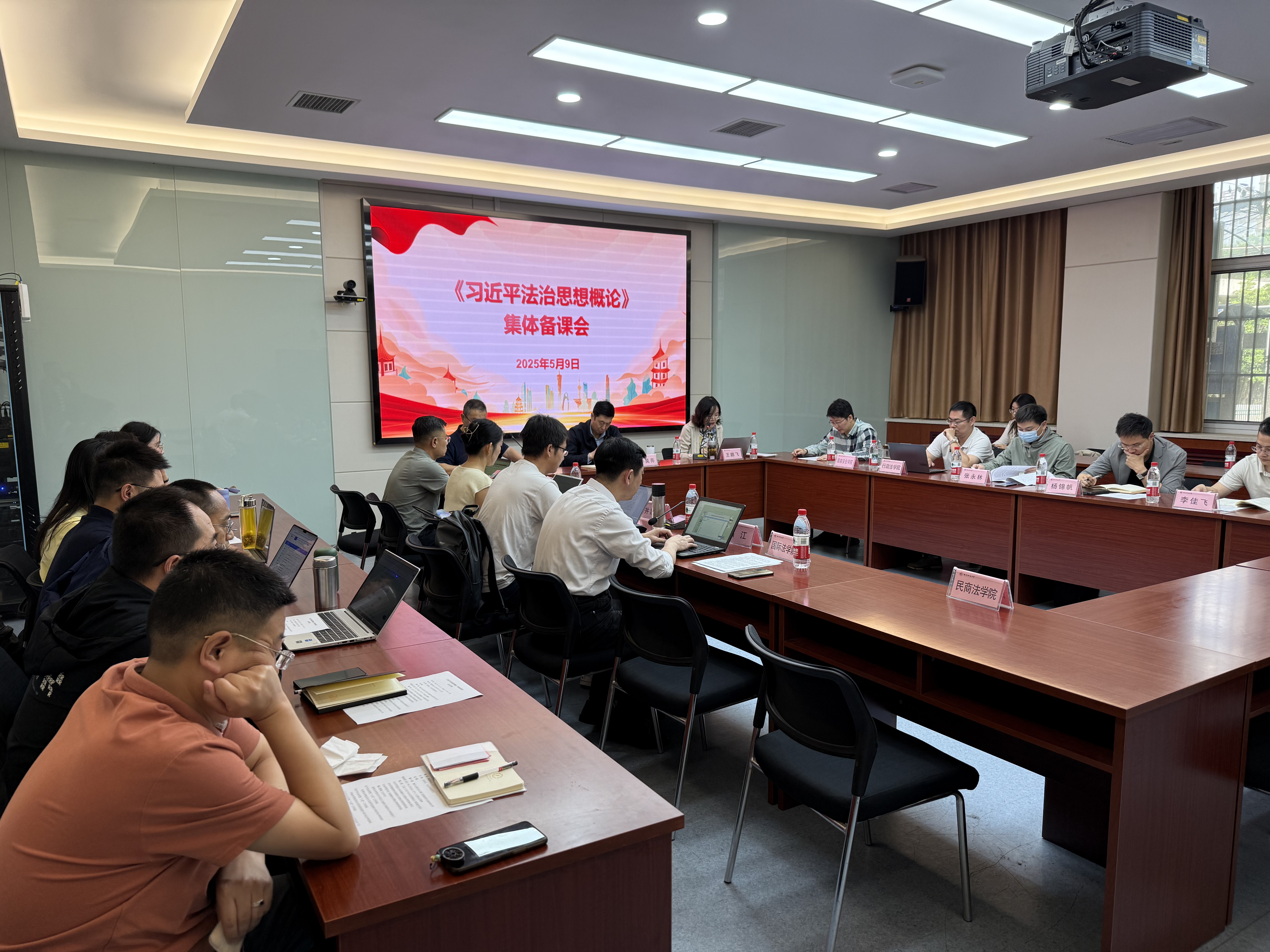 《习近平法治思想概论》课程团队、国际法学院(国际仲裁学院)、民商法学院、行政法学院(纪检监察学院)、国家安全学院(反恐怖主义法学院)、经济法学院(知识产权学院)教师围绕《习近平法治思想概论》课程建设情况、推进习近平法治思想“三进”工作实践以及对策建议展开交流研讨。