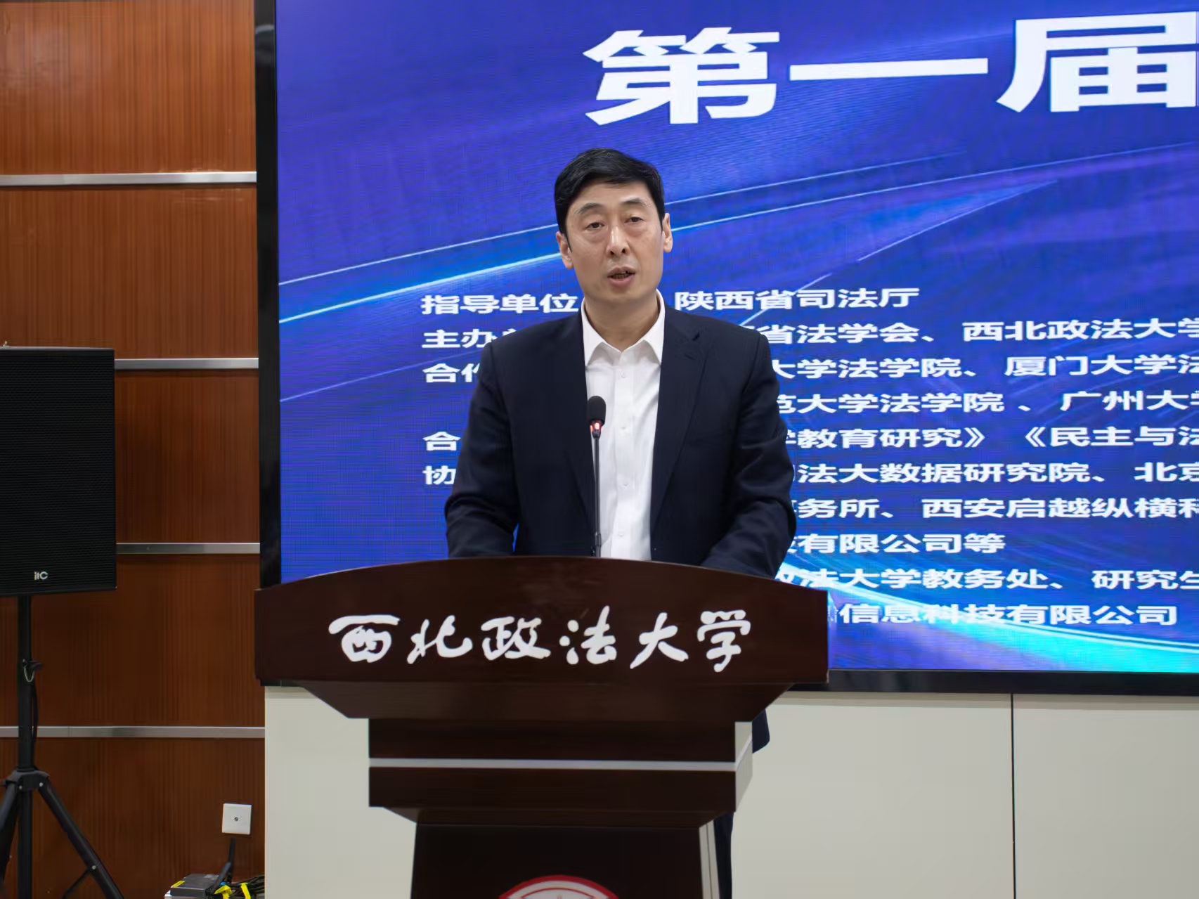 王凯华在致辞中表示,本次大赛的举办正是跨学科融合创新的生动探索,并表达了对青年学子在法治与科技的融合之路上勇毅前行的殷切期望。希望大家为推进法治陕西、数字陕西建设添砖加瓦,为服务国家治理体系和治理能力现代化贡献更多智慧力量。