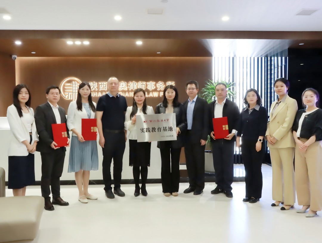 孙静代表学校授予陕西谦奥律师事务所“实践教育基地”牌匾。教务处副处长何玉军向陕西谦奥律师事务所5名优秀律师颁发“实务导师”证书。
