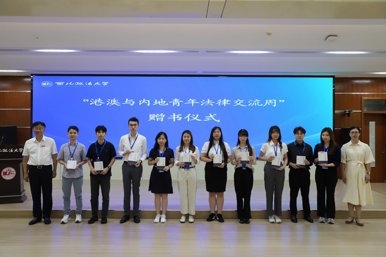 潘新艳与范九利共同向港澳青年学子代表赠送了ac米兰陈玺教授所著的《中华法治文明》