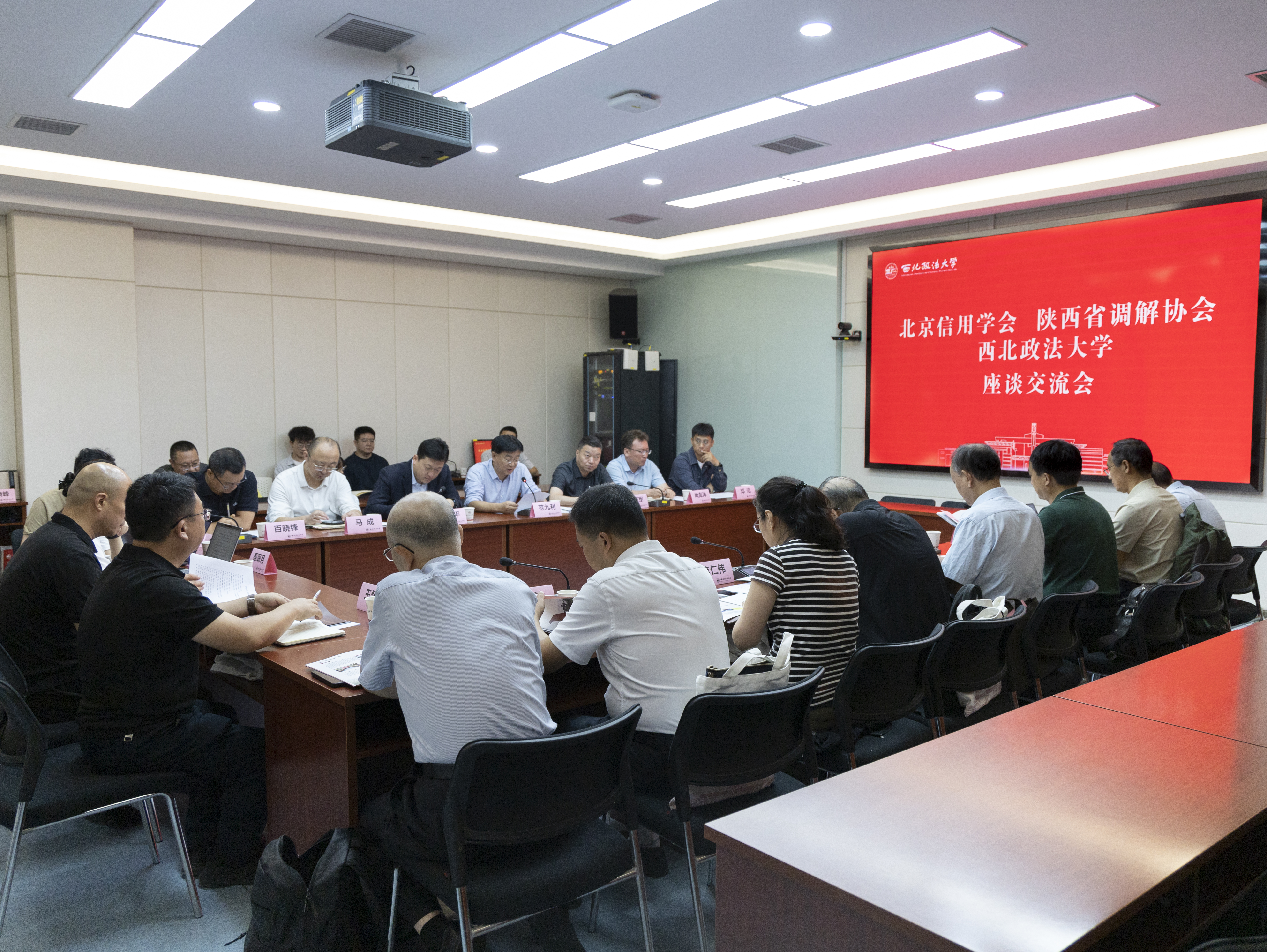 座谈交流会在雁塔校区进行,三方围绕“信用+调解”创新模式、矛盾纠纷多元化解等关键议题展开深入交流,为推动基层社会治理提质增效凝聚共识、探索路径。会议由校团委书记、调解研究院副院长徐京平主持。
