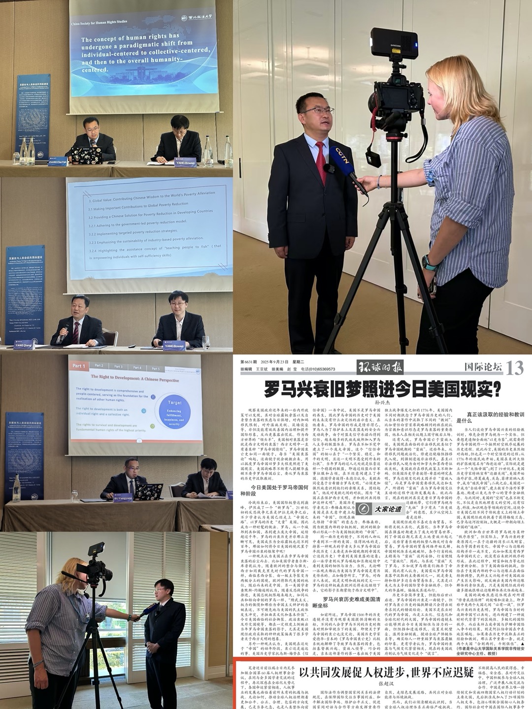 杨强在联合国人权理事会第60届会议“与农民及农村地区其他从业人员权利问题工作组互动对话”中作大会现场发言。主题边会中,张超汉作“共建命运共同体与促进人权事业发展”主题演讲,该主题演讲被《环球时报》9月23日全文转载报道,杨强、步洋洋、杨博文、王丽琼分别以“反贫困的中国经验”“发展权与命运共同体:中国的理念与实践”“备案审查与体系化人权保障的中国经验”“中国少数民族妇女权利保护的实践现状”为题作了主题发言,并与中外嘉宾共同探讨发展权在缩小贫富差距、促进全球治理改革中的核心作用,以及其与人类命运共同体建设间的协同路径。CGTN驻日内瓦记者现场采访了张超汉、杨博文。