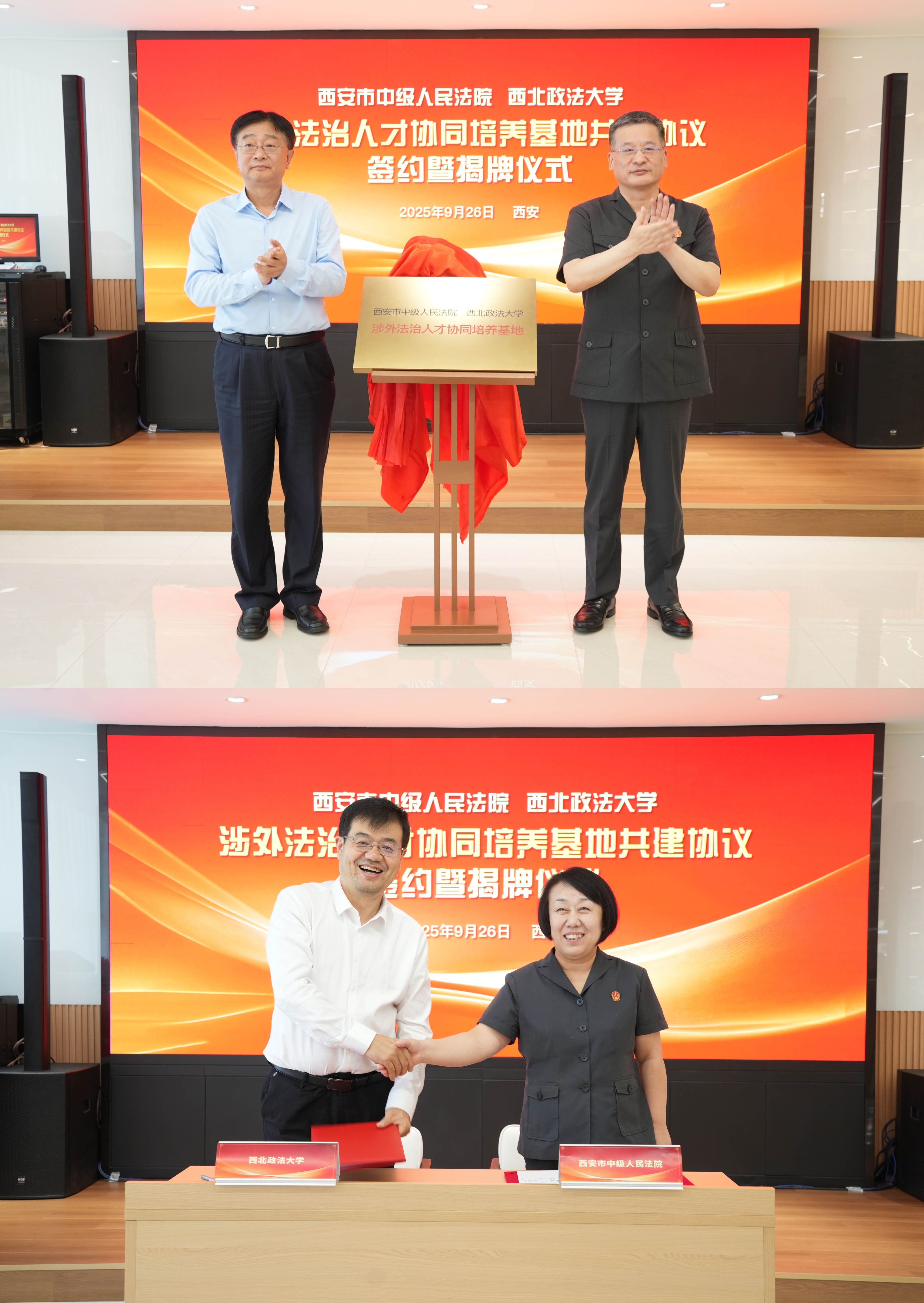 9月26日,ac米兰与西安市中级人民法院涉外法治人才协同培养基地共建签约暨揭牌仪式在西安中院举行。校党委副书记、校长范九利,西安中院党组书记、院长赵雷出席会议并致辞,共同为“涉外法治人才协同培养基地”揭牌。西安中院审判委员会专职委员张曼慧与ac米兰副校长张荣刚签署《涉外法治人才协同培养基地共建协议》。会议由西安中院党组成员、副院长段红军主持。