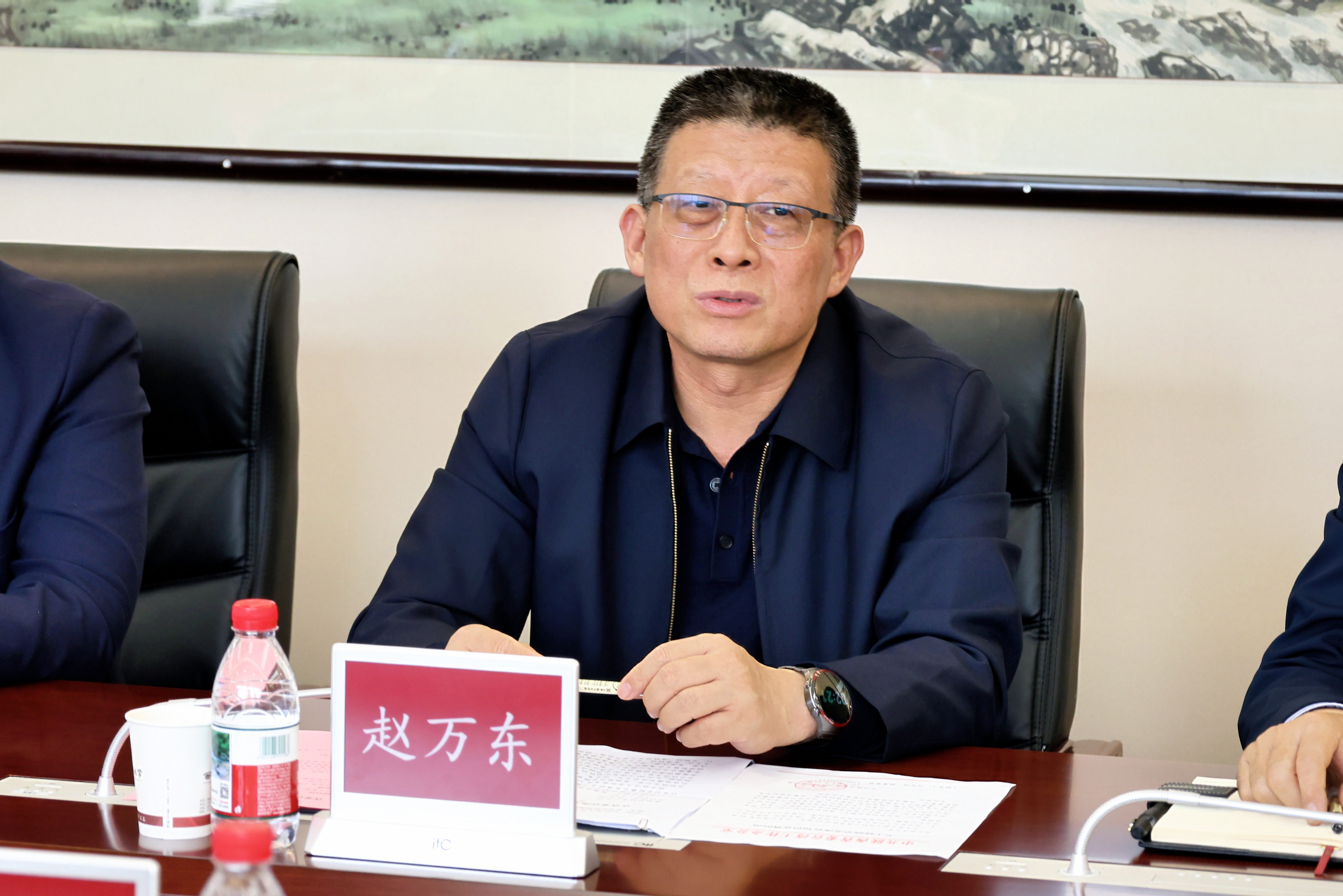 赵万东对姚金川一行表示欢迎,并对学校历史沿革、办学特色、战略发展、人才培养、国际交流和对台工作等方面进行了介绍。他表示,近年来在省委台办的有力指导下,学校对台交流合作稳步推进,形成了稳定的交流网络,并成功打造了以“海峡两岸法律文化周”为代表的一系列交流平台。面对新形势与新挑战,赵万东强调,学校将以此次调研为重要契机,深入贯彻落实中央和省委对台工作部署,聚焦重点难点问题,着力深化与台湾高校及研究机构的务实合作,充分发挥法学学科专业优势,积极探索建立常态化交流机制,致力于产出更多具有价值与影响力的研究成果,为推动两岸关系和平发展贡献坚实的学术智慧与理论支撑。