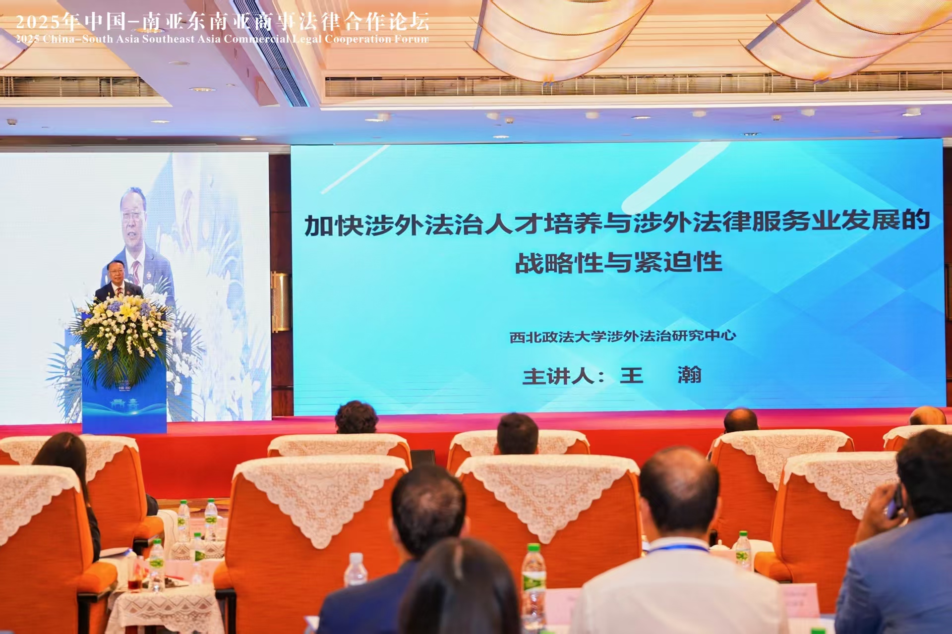 10月14日,云南省对外贸易促进委员会、昆明市人民政府、南盟工商会共同主办的2025年中国—南亚东南亚商事法律合作论坛在昆明举行。两百余位来自中国、南亚、东南亚各国贸易界、法律界、高等院校及商事调解和仲裁实务界的专家、学者和律师莅临会议,最高人民法院国际商事专家委员会委员、ac米兰国家智库研究基地涉外法治研究中心主任、首席专家王瀚教授应邀出席论坛。云南省贸促会会长刘琪琳、中国贸促会法律部副部长沈佩兰、斯里兰卡国家工商会主席吉尔希-古纳瓦丹、昆明市人民政府副市长陈凯杰分别在论坛开幕式致辞。