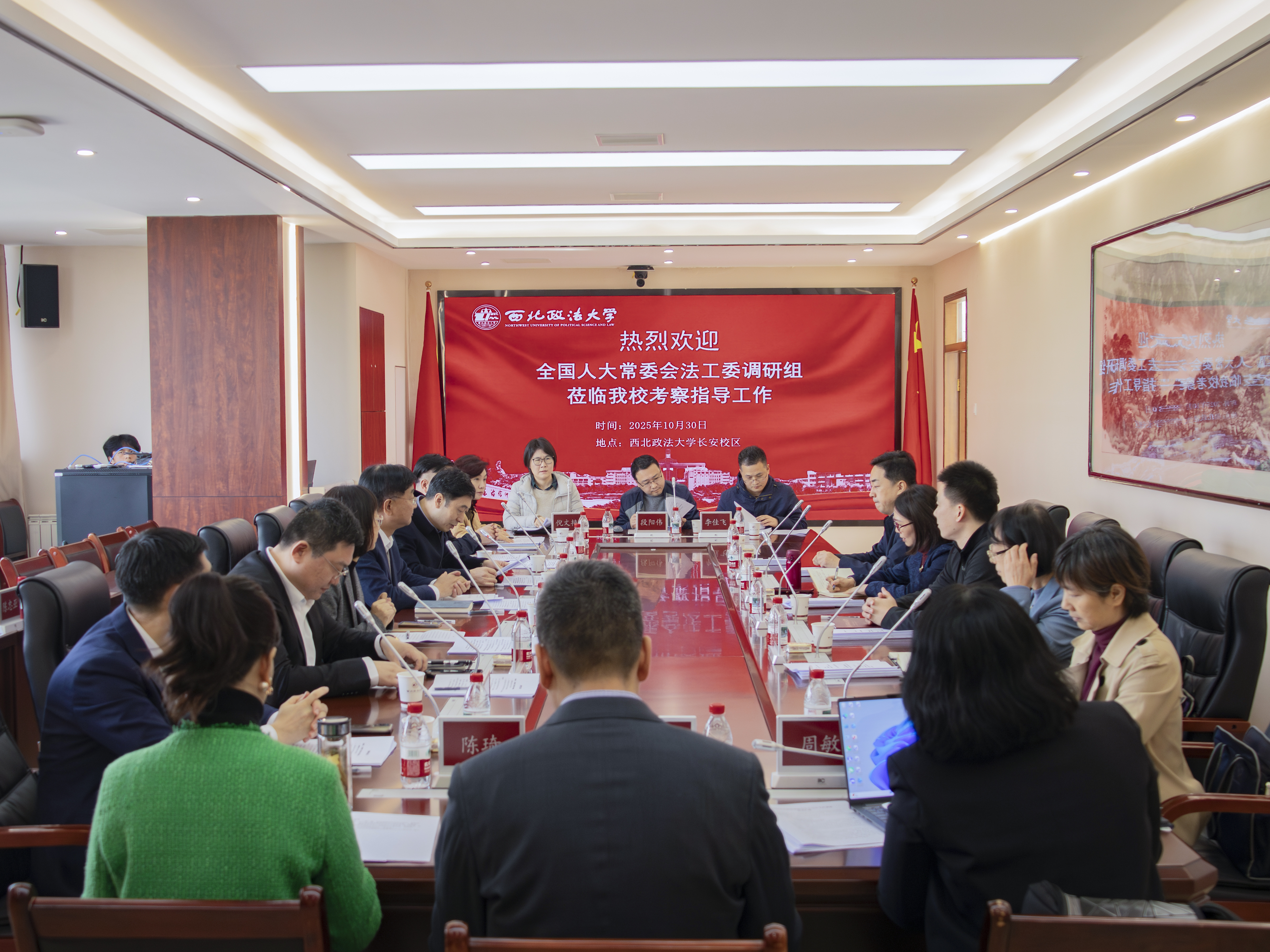 范九利对石红莉一行的到来表示热烈欢迎。他表示,学校作为国家在西北地区布局的重点政法院校,始终坚持以服务国家法治建设为己任,在长期的办学实践中,与立法、司法、行政执法等部门以及社会各界建立了广泛的联系,在立法研究与服务领域有着丰富的成果和积淀,有基础、有条件,也有信心能够承担起基层立法联系点的任务。学校将以此次调研为契机,依托学校的学科优势、人才优势和区位特色,不断强化立法研究和服务的工作力量、运行机制、能力建设,为服务国家高质量立法工作贡献西北力量。