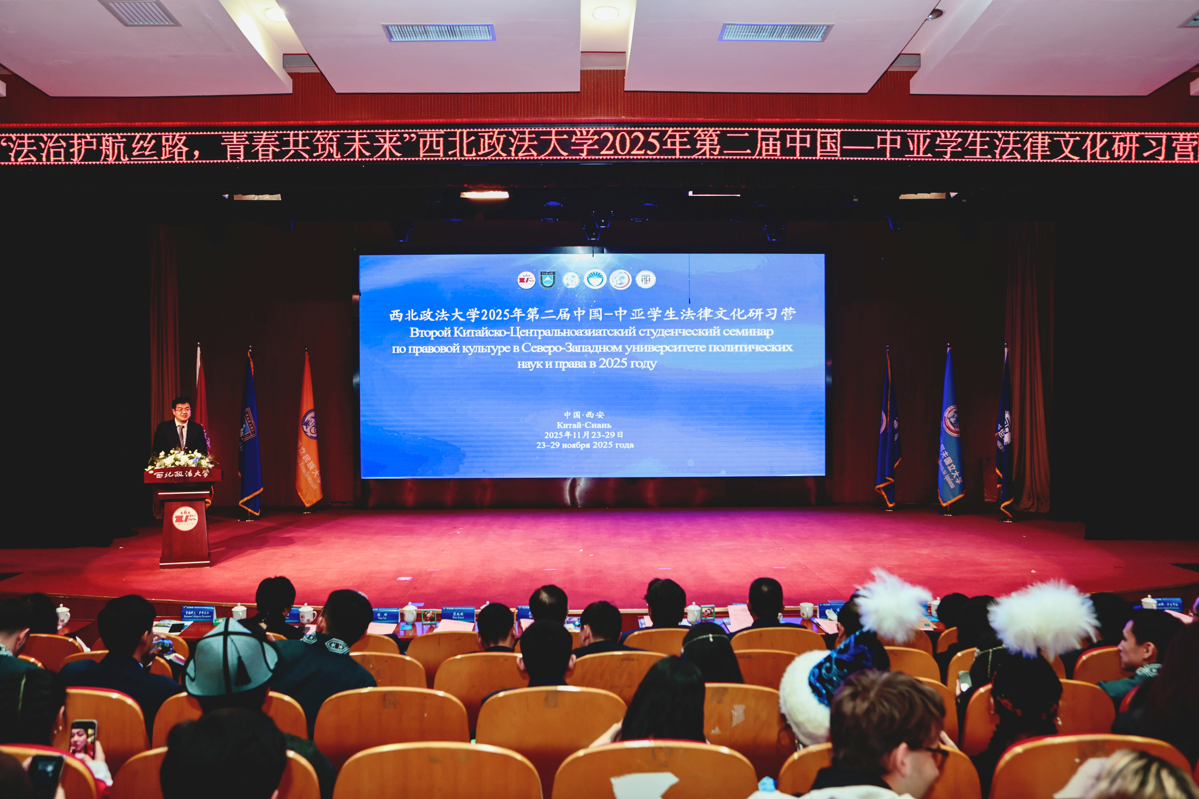赵万东对远道而来的中亚三国师生表示欢迎。他指出,在共建“一带一路”、弘扬“中国-中亚精神”的时代背景下,深化法学青年之间的交流与互鉴,对于夯实区域法治认同、构建更加公正合理的国际法治秩序具有深远意义。他强调,青年是法治未来的希望,是文明对话的使者,期待本次研习营能成为激发学术思想、锤炼实践能力、厚植世代友谊的重要平台。学校愿以此次活动为契机,全面深化与中亚伙伴在法治比较研究、高端涉外法治人才联合培养、师资交流与协同创新、法律查明与司法合作平台共建等领域的务实合作,共同将研习营打造为区域法治互鉴与人才共育的高地,为构建更为紧密的中国—中亚命运共同体注入新动能。