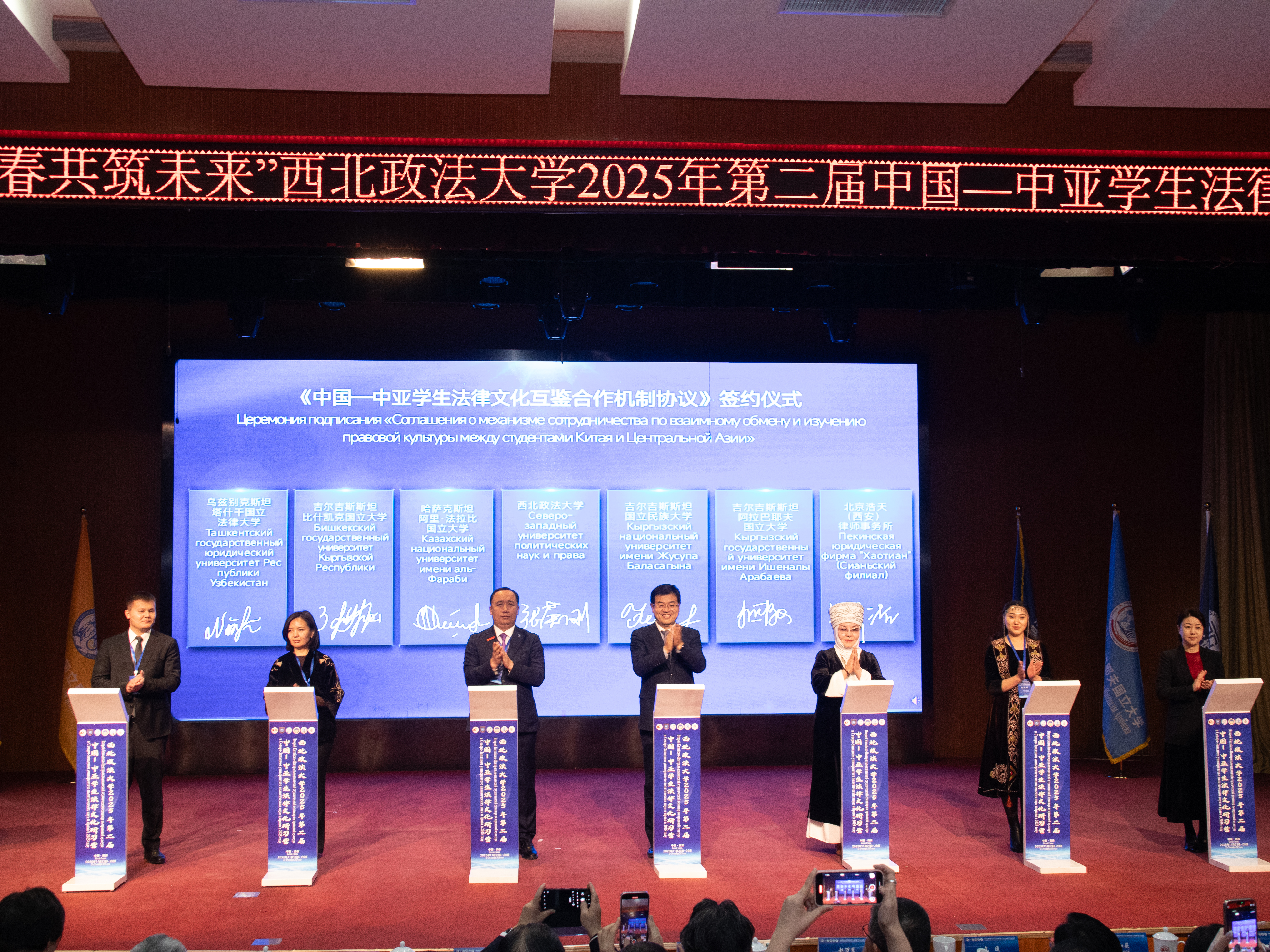 在与会嘉宾的共同见证下,ac米兰与中亚五校代表及北京浩天(西安)律师事务所共同签署了《中国—中亚学生法律文化互鉴合作机制协议》,标志着交流合作迈向机制化、规范化新阶段。