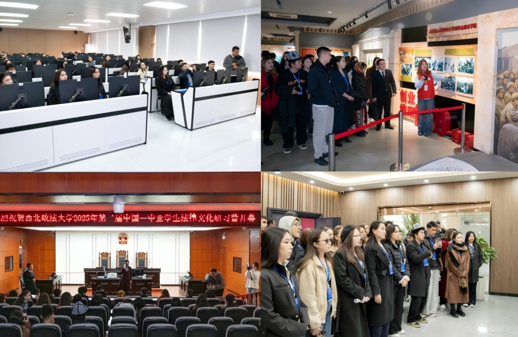 仪式结束后,与会领导与嘉宾共同栽种象征友谊的“中国—中亚法律文化互鉴同心树”。期间,中亚师生一行赴校史馆、习近平法治思想 “三进” 成果展览馆、模拟法庭及法学实验实训中心参观考察,通过实物史料、成果展示、实景体验等多元形式,全面了解学校法学教育的发展历程、理论创新实践及实训教学体系,深刻体悟中国特色法治教育的鲜明特质与育人理念。