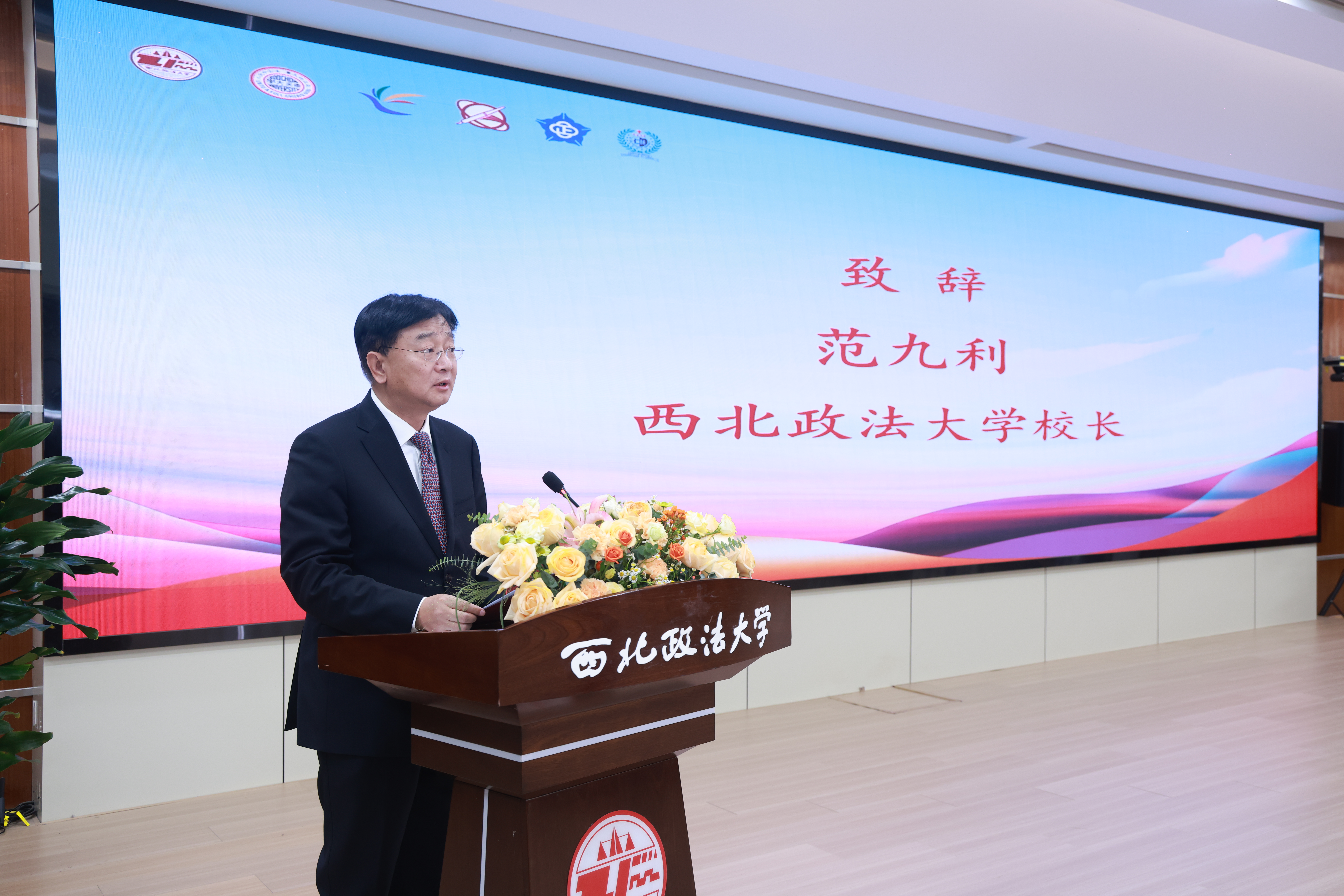 范九利在致辞中代表学校对远道而来的台湾师生表示热烈欢迎。他指出,海峡两岸法律文化周自创办至今,始终坚持“以法为桥、以文为媒”,积极推动两岸法学教育互鉴、学术共研,促进两岸青年思想碰撞与情感交融,是传承中华法治文明、铸牢中华民族共同体意识的生动实践,期待两岸学子在本次交流活动中开阔视野、凝聚认同,让跨越海峡的友谊之树常青。