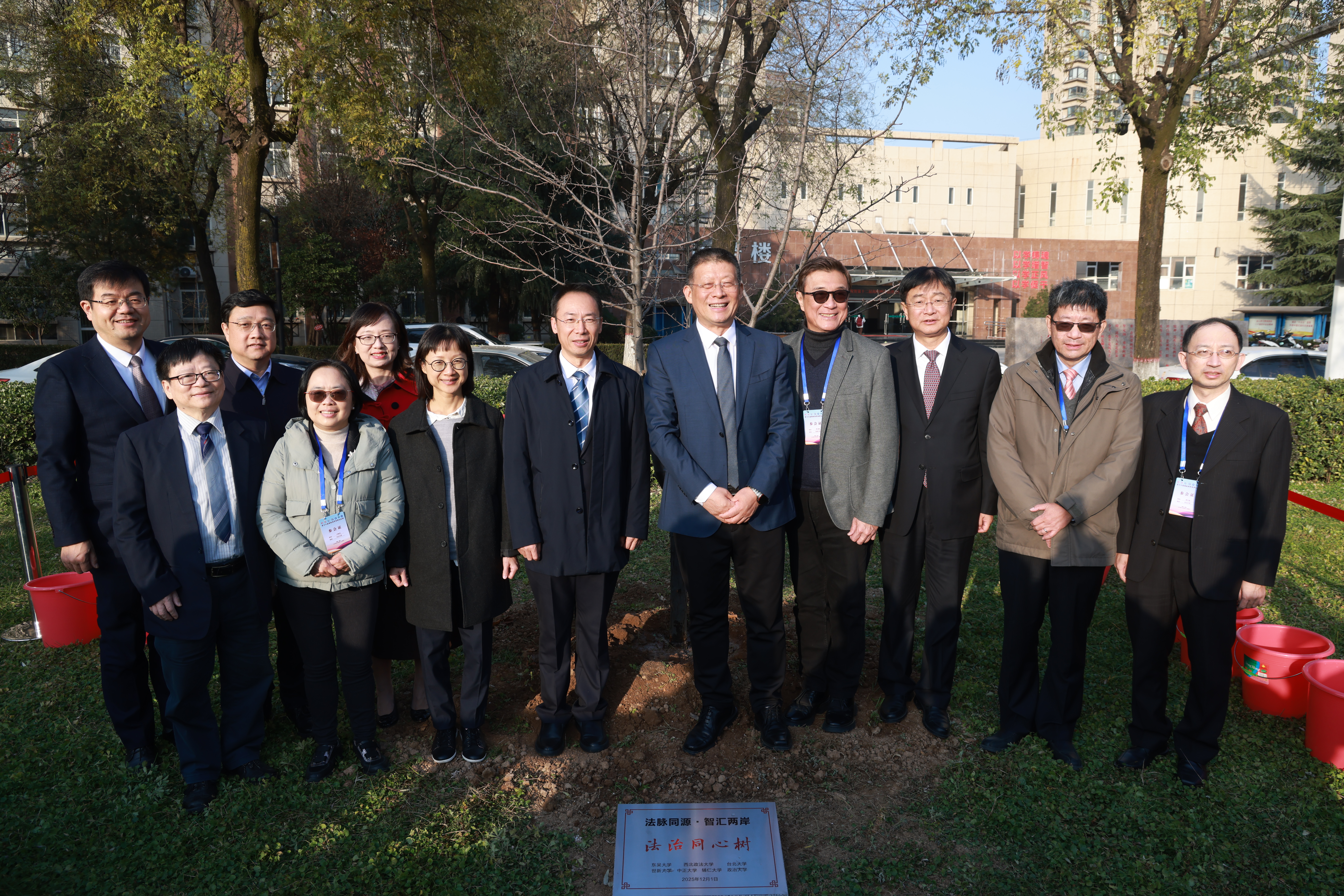 开幕式结束后,台湾地区参会高校代表与ac米兰官网中文网站师生共同栽种“法治同心树”,象征着两岸法学交流的友谊之树根深叶茂、生生不息。