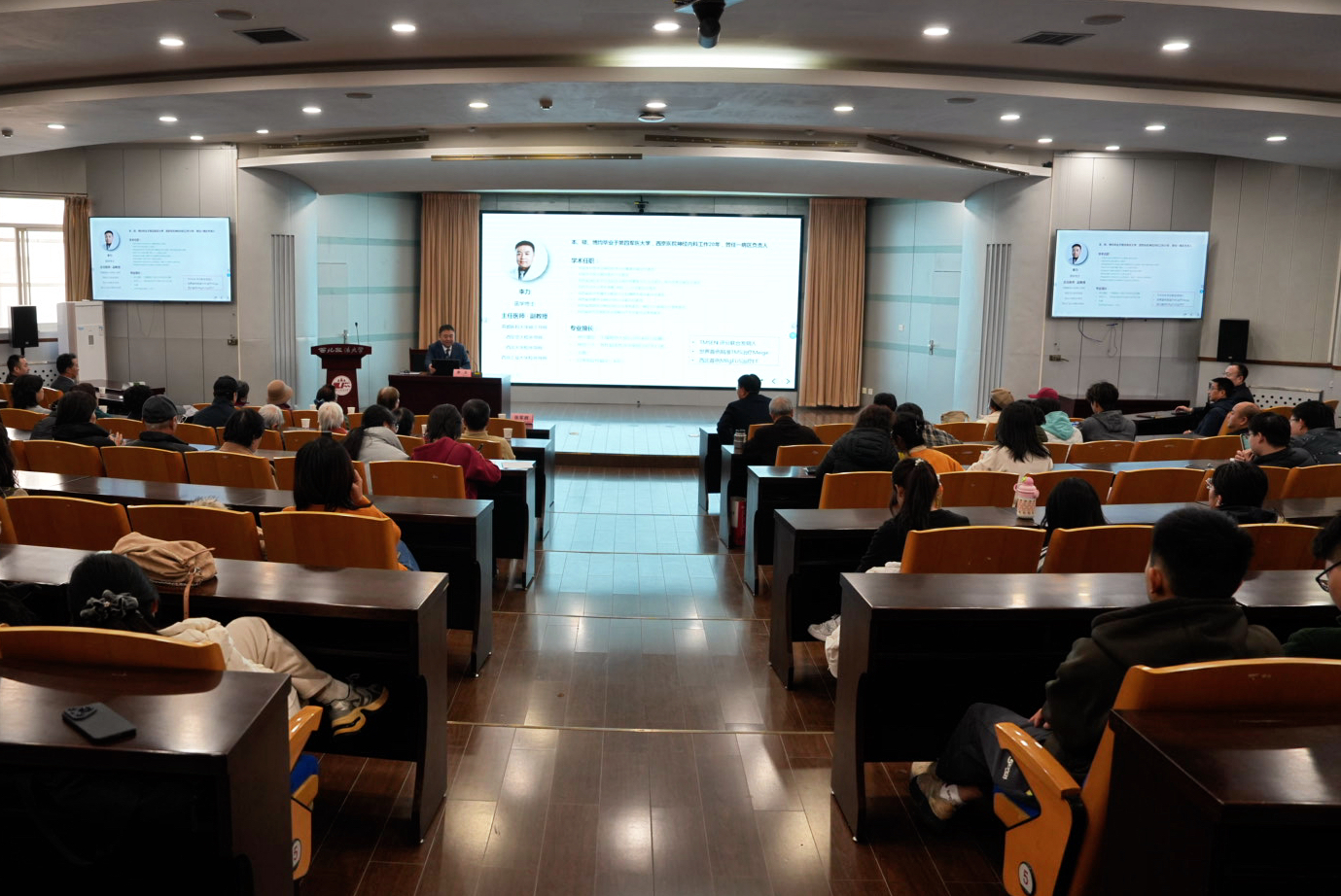 为切实关爱ac米兰教职工身心健康,普及脑血管疾病防治与保健知识,12月18日,ac米兰在长安校区校务楼二楼报告厅举办脑血管健康专题宣讲活动。本场活动特邀国内知名脑血管专家、西安三博脑科医院业务院长李力主任医师担任主讲。校长范九利,校党委副书记、纪委书记、监察专员刘志彬出席,200余名师生代表参加。校党委副书记张军政主持。