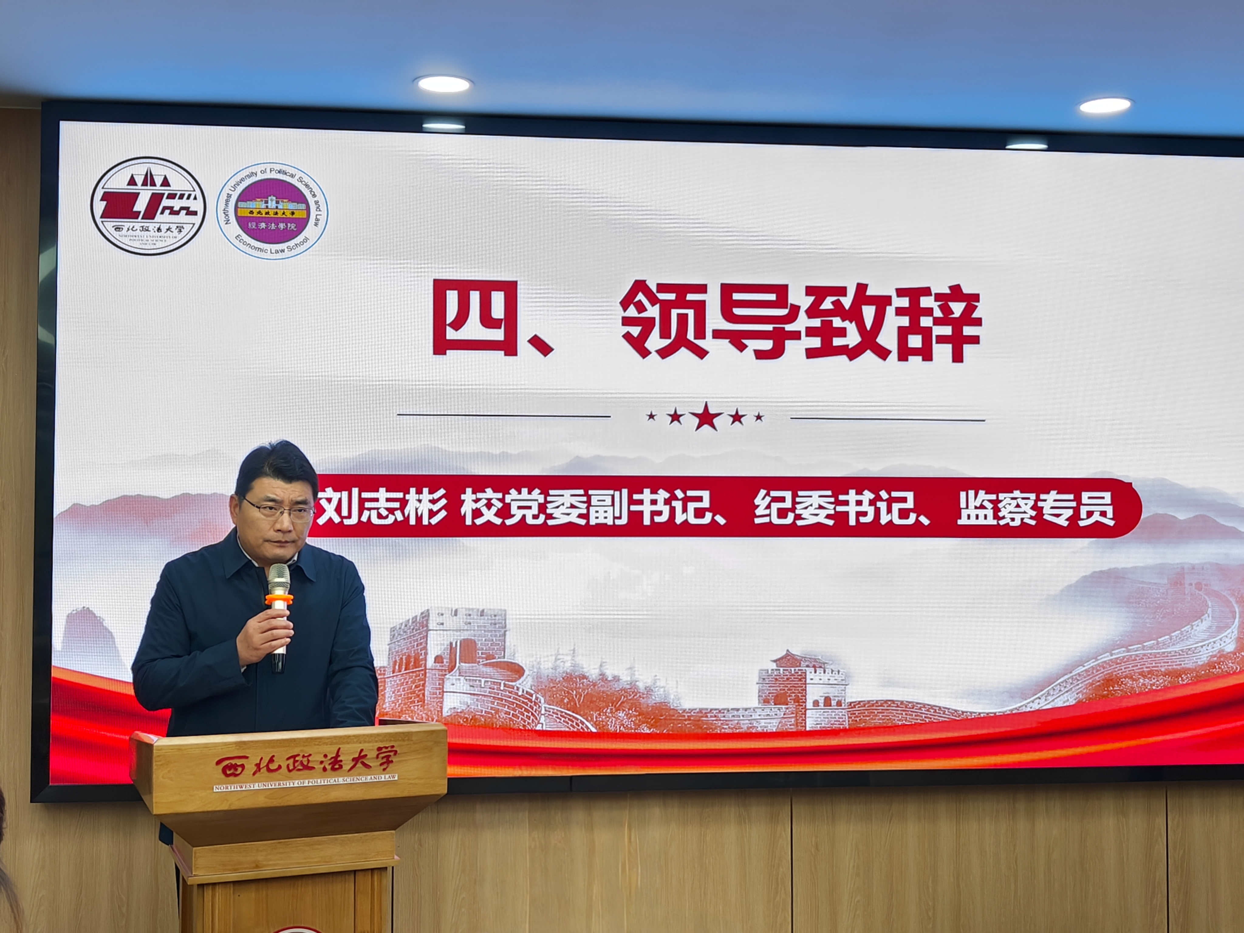 刘志彬在讲话中表示,学校作为法学教育西部重镇,廉洁文化建设成效显著,已获省级廉政文化建设示范点等荣誉,此次活动将廉洁文化与艺术融合,对培养高素质法治人才意义重大。他希望广大师生,一要加强学习,筑牢廉洁思想根基;二要守正创新,弘扬优秀廉洁文化;三要打造品牌,形成西法大特色廉洁文化。