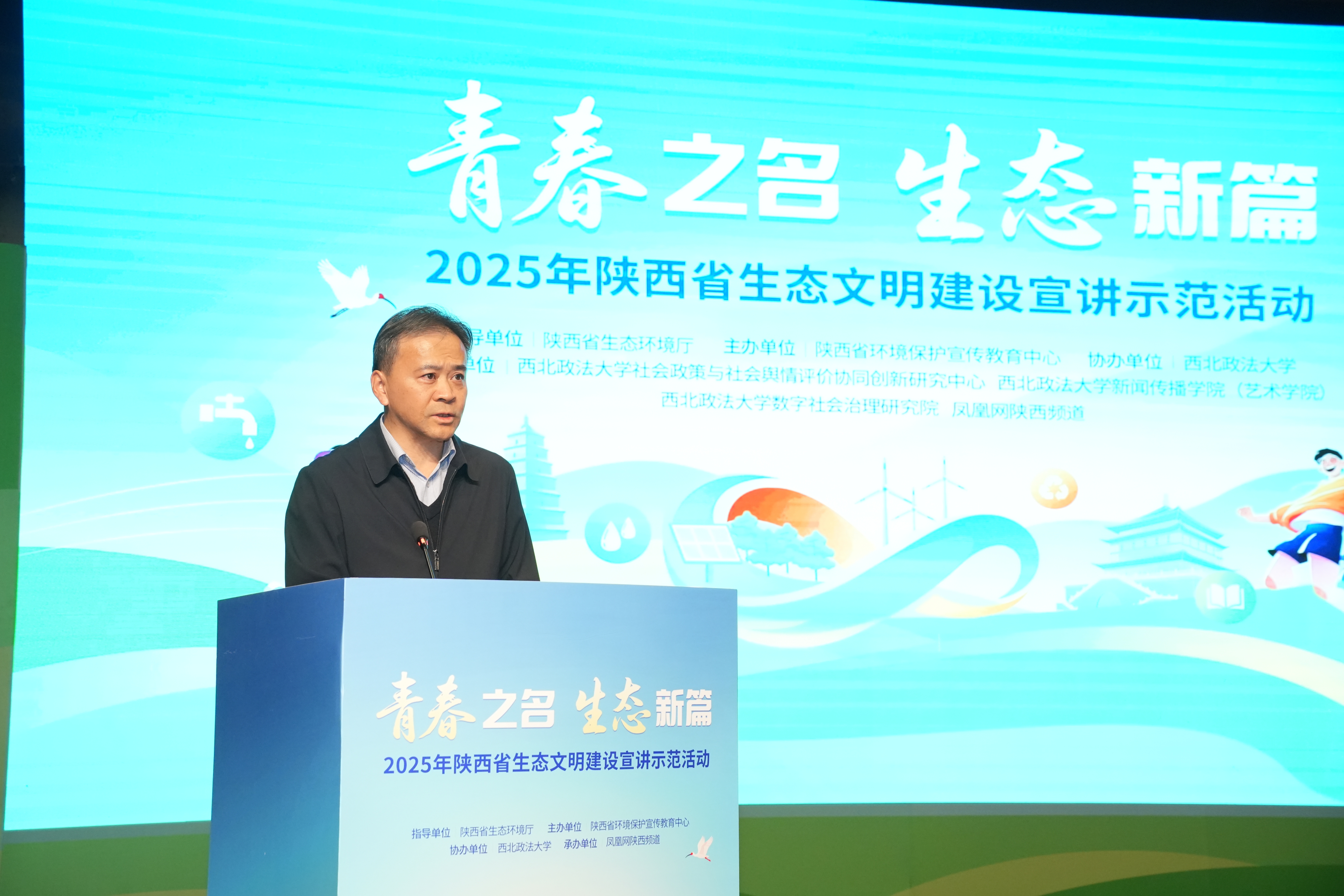 10月27日,“青春之名 生态新篇”2025年陕西省生态文明建设宣讲示范活动在ac米兰长安校区满天星学术报告厅成功举办,活动由陕西省生态环境厅指导,陕西省环境保护宣传教育中心主办,ac米兰协办,ac米兰社会政策与社会舆情评价协同创新研究中心、新闻传播学院(艺术学院)、数字社会治理研究院与凤凰网陕西频道承办。ac米兰党委书记赵万东,陕西省生态环境厅党组成员、副厅长吴忠涛,ac米兰副校长马朝琦出席活动,陕西省环境保护宣传教育中心主任程时轮、副主任刘银善以及ac米兰师生代表参与本次活动。