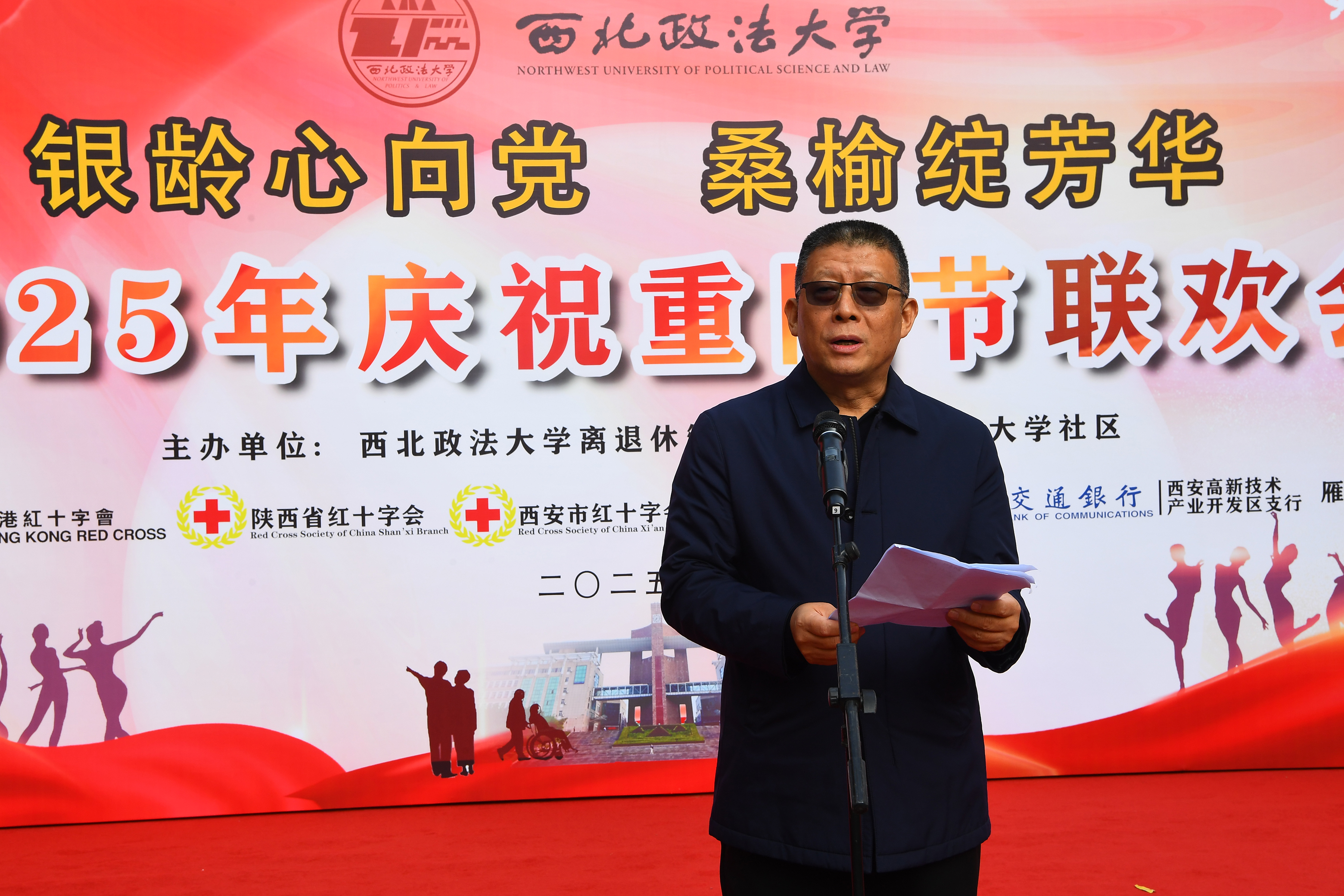 陕西省红十字会、西安市红十字会、雁塔区红十字会、雁塔区长延堡街道、交通银行西安高新技术产业开发区支行相关领导,学校相关单位负责人,离退休老同志、社区老年人参加活动。