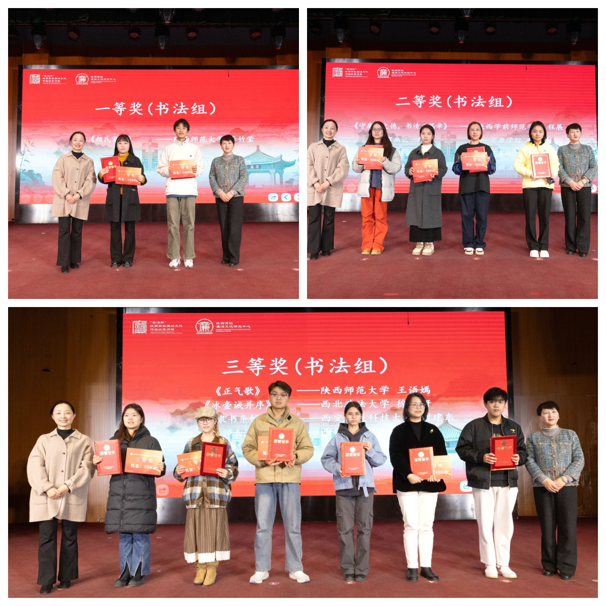 陕西科技大学党委副书记、纪委书记、监察专员罗莹与西安音乐学院党委副书记、纪委书记、监察专员易红彬共同为书法组优秀作品颁奖