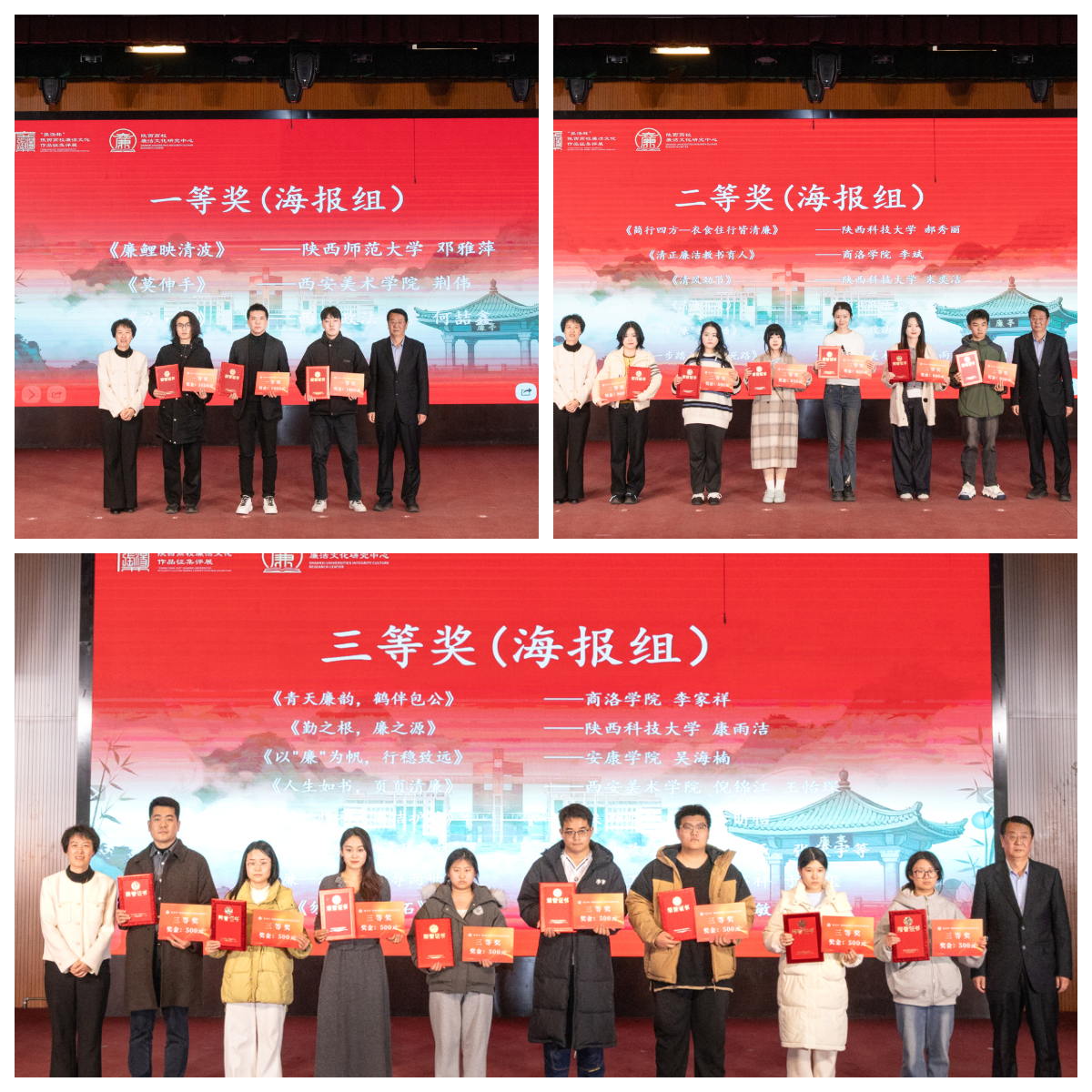 商洛学院党委副书记、纪委书记、监察专员王浩与陕西学前师范学院党委副书记、纪委书记、监察专员赵琼共同为海报组优秀作品颁奖