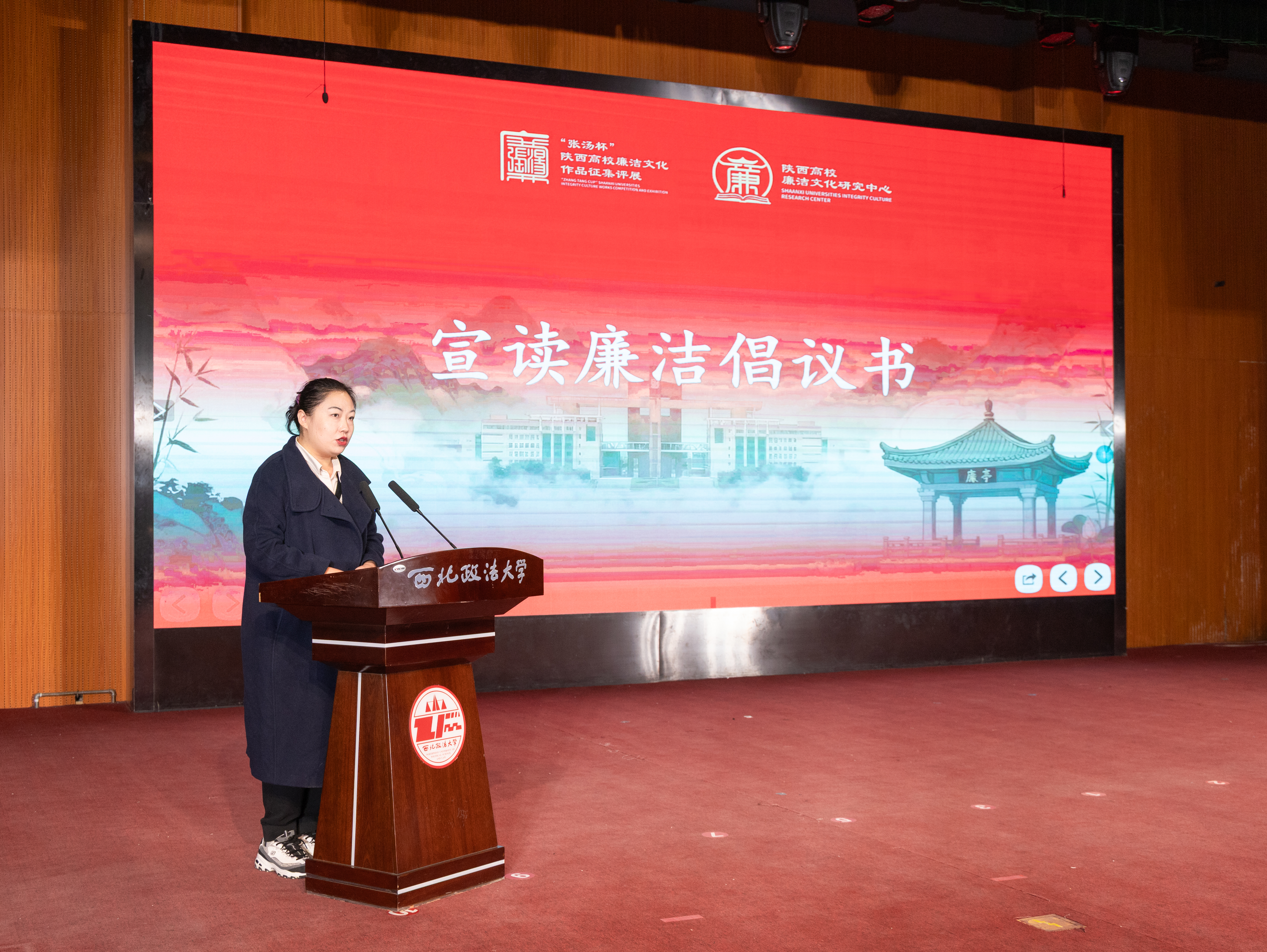 会上,陕西高校廉洁文化研究中心研究员代表张泽宣读了廉洁倡议书,号召广大青年师生将廉洁要求内化于心、外化于行。