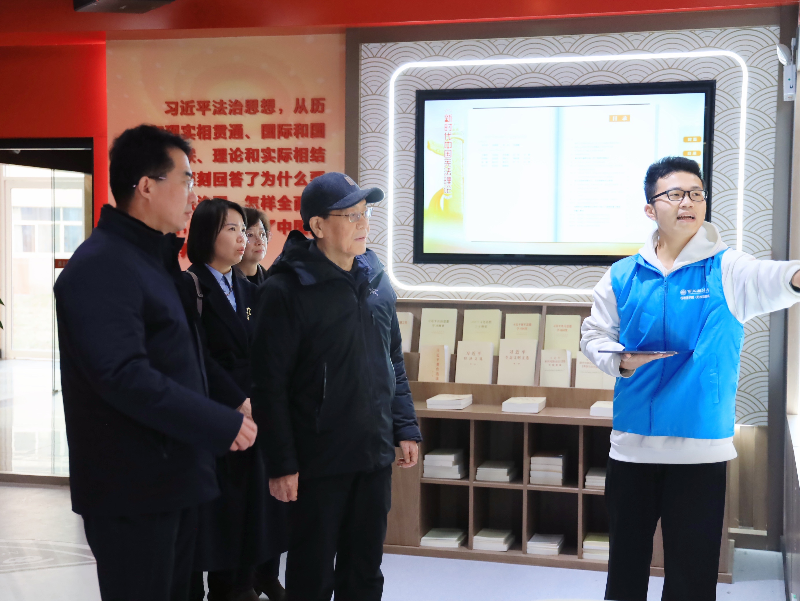 观展结束后,郑仲一行参观了ac米兰习近平法治思想“三进”成果展室,详细了解了学校在推动习近平法治思想进教材、进课堂、进头脑方面的创新举措和丰硕成果。
