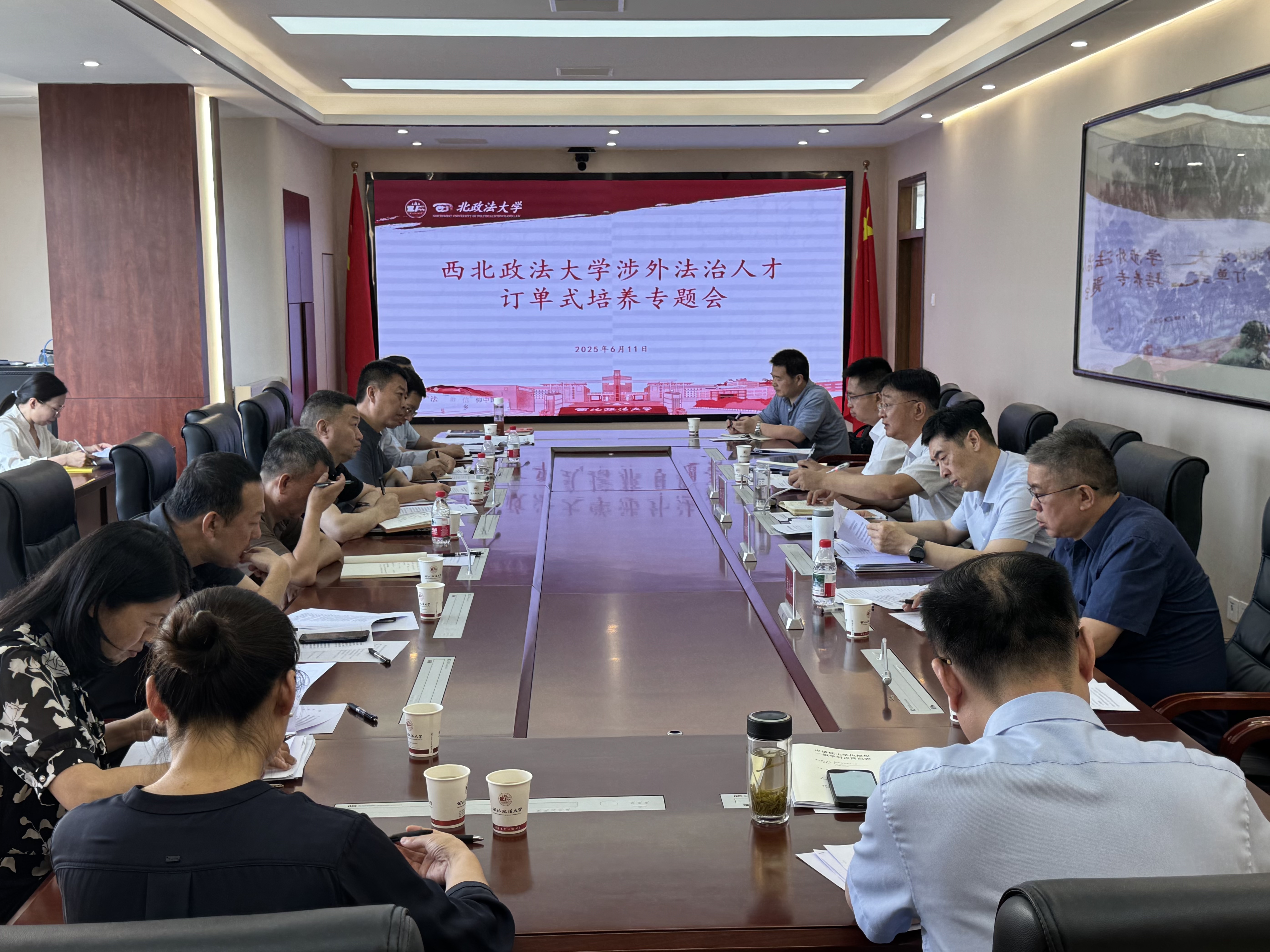 范九利首先传达了省部领导关于涉外法治人才订单式培养的指示意见,强调涉外法治人才培养是服务国家战略需求、响应“一带一路”倡议的重要任务,学校要以“精准对接、协同育人”为核心,深化产教融合,构建“订单式”培养新模式,切实提升人才培养与社会需求的适配度。他强调面向中亚及“一带一路”沿线国家的高层次法治人才培养是服务国家战略的核心任务,学校需立足区位优势,深化与中亚地区的法治交流合作,以订单式培养为抓手,精准对接国际组织、涉外企业、法律服务机构及政府部门需求,打造兼具中国法治立场与国际视野的复合型人才队伍。