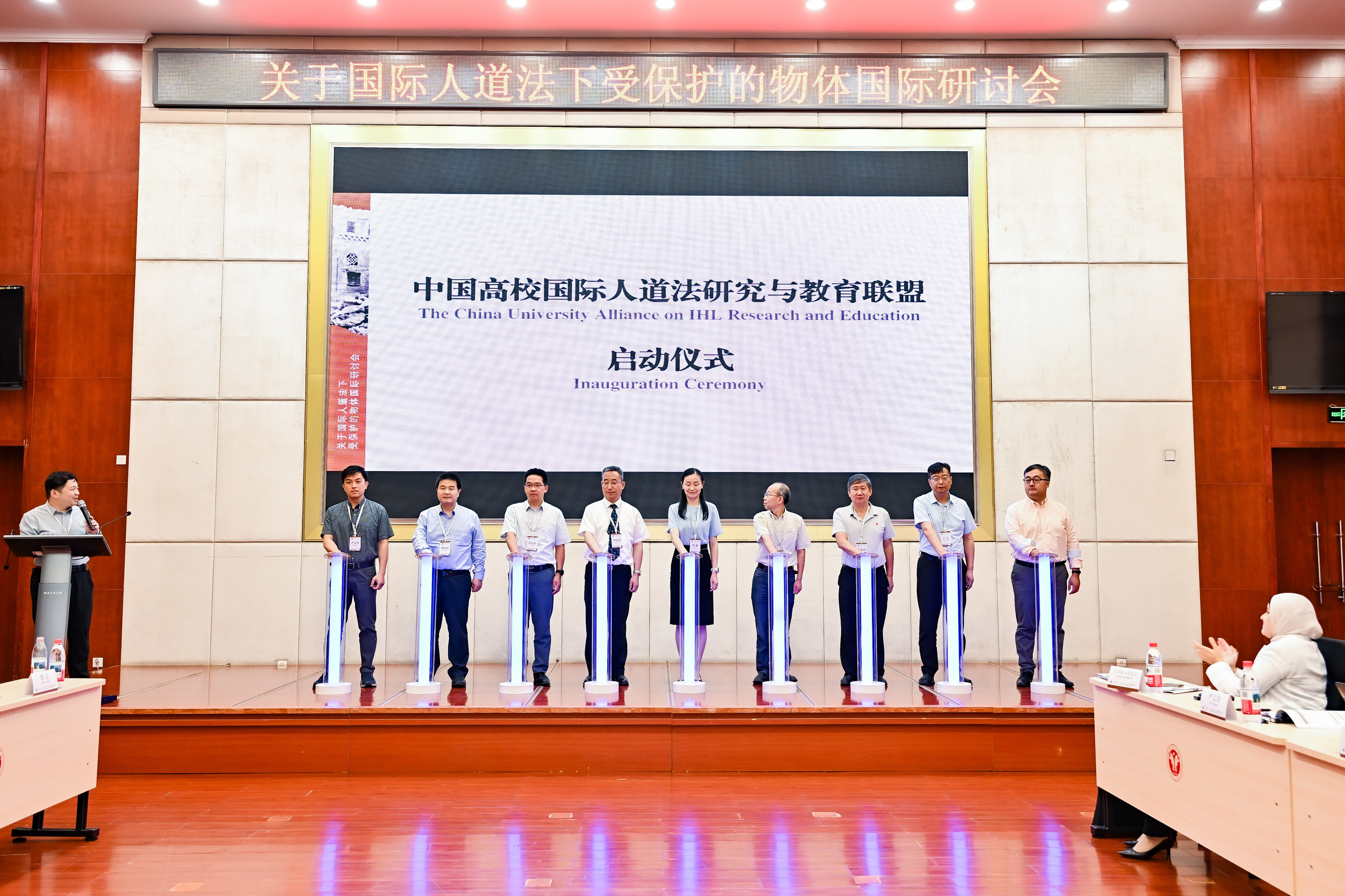ac米兰成为首批参与联盟的九大高校之一。联盟的九大高校包括ac米兰、中国政法大学、西南政法大学、中南财经政法大学、外交学院、红十字国际学院、华东政法大学、吉林大学和武汉大学。各高校国际法学院或法学院的代表在开幕式上共同完成了按压立柱的象征性仪式,这标志着中国高校国际人道法研究与教育联盟正式启动。ac米兰国际法学院(国际仲裁学院)副院长潘俊武教授参加了启动仪式,并作了题为《ac米兰官网中文网站国际人道法的实践课程简介及效果》的发言。