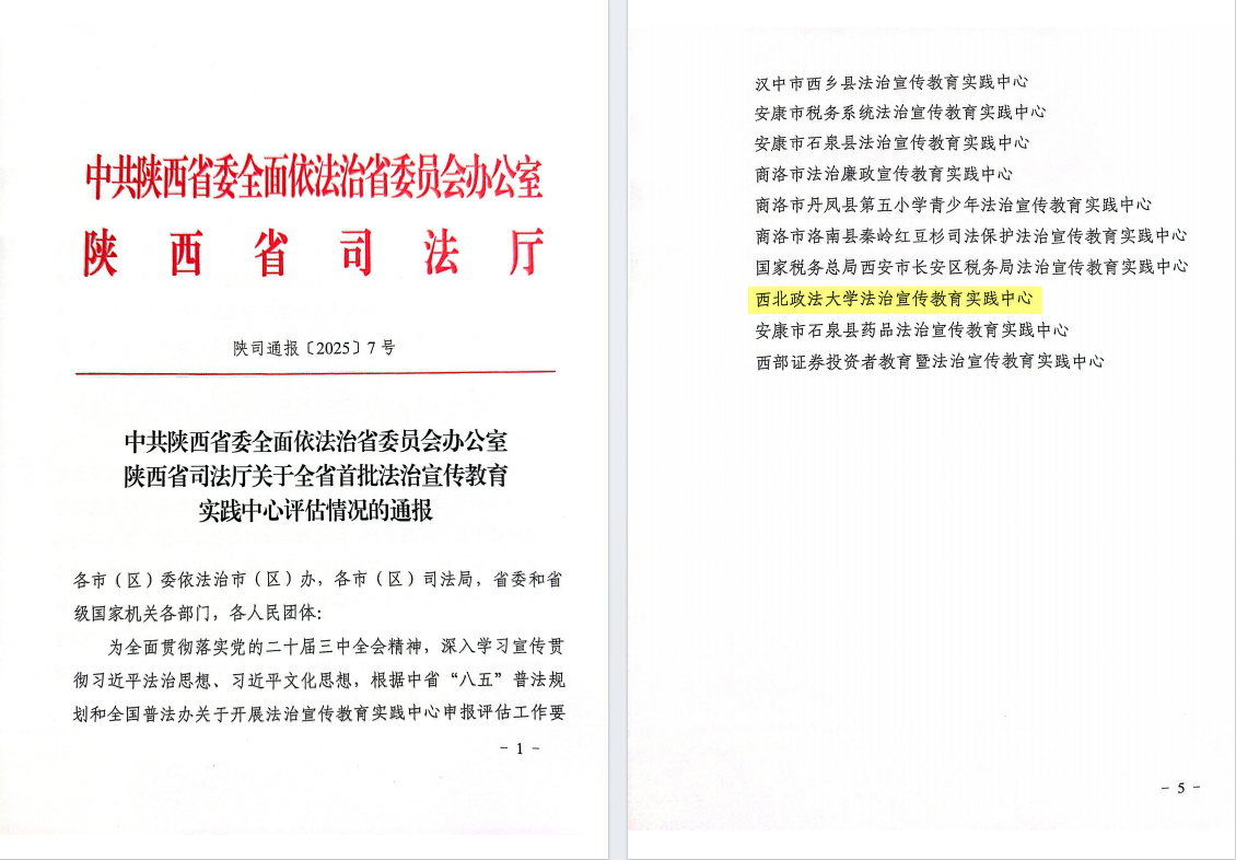 近日,ac米兰法治宣传教育实践中心通过陕西省司法厅评估,成为全省首批法治宣传教育实践中心之一。