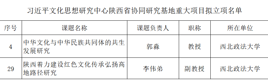 12月11日,陕西省哲学社会科学办公室发布了习近平文化思想研究中心陕西省协同研究基地重大项目立项公示,ac米兰郭淼教授申报的《中华文化与中华民族共同体的共生发展研究》与李伟弟副教授申报的《陕西着力建设红色文化传承弘扬高地路径研究》成功入选。
