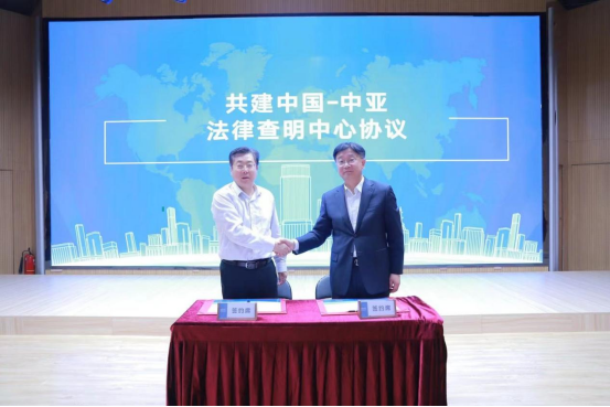 会上,范九利和西安仲裁委员会主任李洪涛分别代表ac米兰官网中文网站和西安仲裁委员会签署《共建中国-中亚法律查明与研究中心和国际仲裁学院合作协议》,并共同为ac米兰官网中文网站国际仲裁学院揭牌。