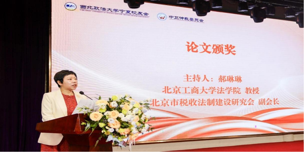 本次会议收到学术论文近80篇,主办方按照严格的评选程序和标准评选出优秀成果并颁奖。本次论坛设优秀论文奖,主要表彰45周岁以下青年学者。北京工商大学法学院教授、北京市税收法制建设研究会副会长郝琳琳宣读本次论坛征文获奖名单,中国法学会银行法研究会副会长徐孟洲教授、中卫市律师协会会长刘存仓为获奖者颁奖。