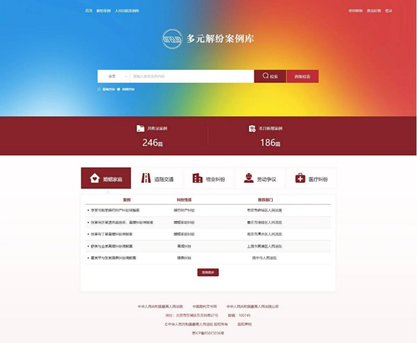 为贯彻落实习近平总书记关于“抓前端、治未病”“要坚持把非诉讼纠纷解决机制挺在前面”等重要指示精神,发挥典型案例示范引领作用,最高人民法院2024年5月启动建设“多元解纷案例库”,经过八个多月的建设和试运行工作,今日,正式上线并向社会公众开放,供国家机关、社会团体、调解组织和社会公众查询、使用、学习、研究。社会公众可以登录网址http://dyjfalk.court.gov.cn访问多元解纷案例库,已经注册人民法院调解平台的用户还可以通过调解平台一键登录多元解纷案例库。