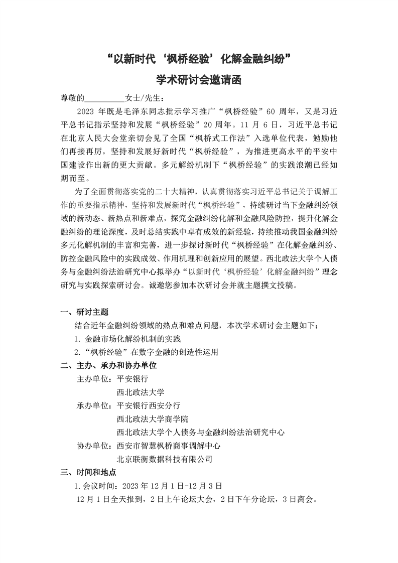 下一篇:金融纠纷多元化解学术研讨会邀请函