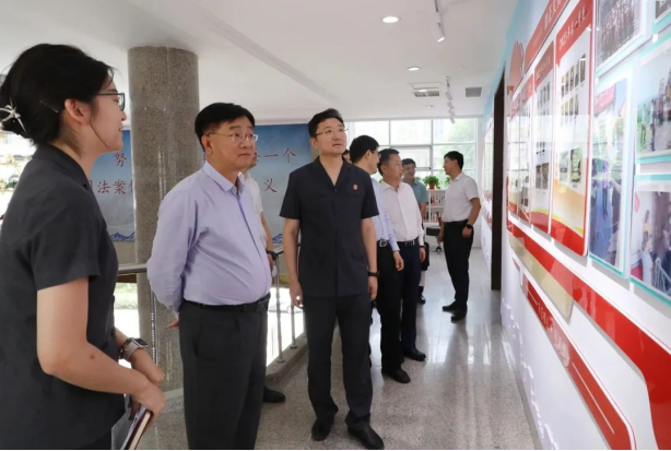 范九利实地参观了法院诉讼服务中心、信访接待室及文化建设等场所,在讲解员解说和引导下,时而驻足观看,时而点评发问,给予高度评价。
