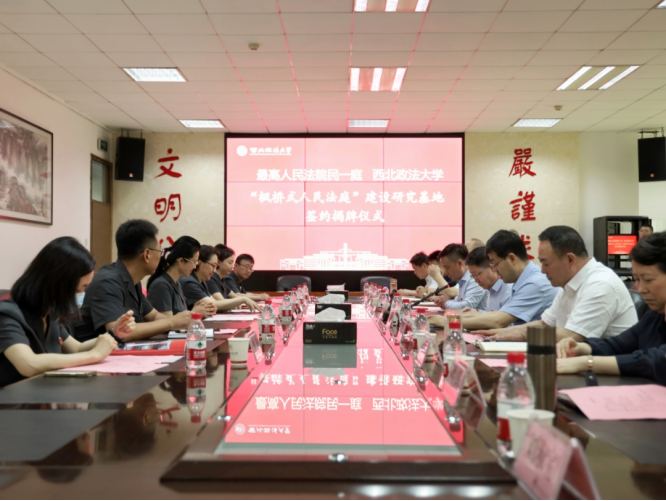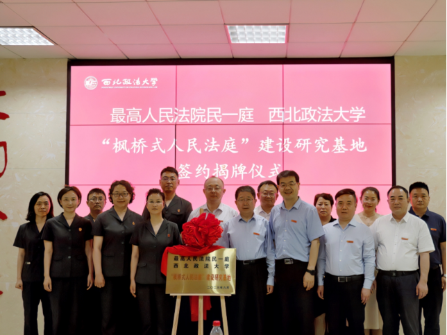 6月9日上午,最高人民法院民一庭“枫桥式人民法庭”建设ac米兰官网中文网站研究基地签约揭牌仪式在ac米兰长安校区举行。最高人民法院民一庭副庭长吴景丽,陕西省高级人民法院审判委员会专职委员赵学玲,ac米兰党委书记孙国华出席仪式。签约揭牌仪式由副校长张荣刚主持。