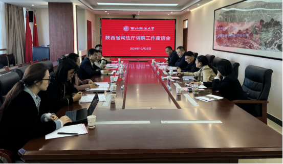 陕西省司法厅二级巡视员、陕西省调解协会副会长马异文,陕西省司法厅人民参与和促进法治处二级调研员、陕西省调解协会秘书长刘美琳,陕西省司法厅人民参与和促进法治处二级调研员张建利陪同调研。科研处、调解研究院、民商法学院、行政法学院、商学院等单位负责人及专家学者参加座谈。