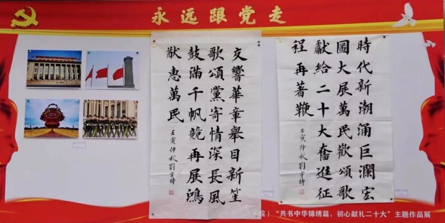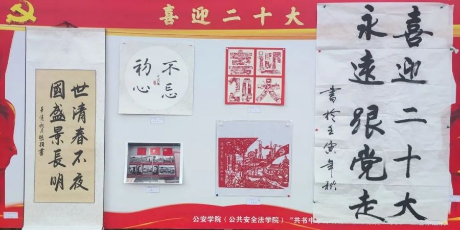 公安学院(公共安全法学院)“共书中华锦绣篇,初心献礼二十大”主题作品展活动已圆满开展。自9月29日活动通知发出以来,公安学院学子积极响应,以书法,绘画,剪纸,摄影等多种形式的作品共书百米卷,礼赞二十大。