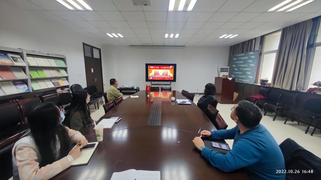 会议组织观看了中国共产党第二十次全国代表大会闭幕会、中国共产党第二十届中央委员会第一次全体会议公报等相关新闻报道。会议传达了校党委关于学习好、宣传好、贯彻好党的二十大精神的四点要求。